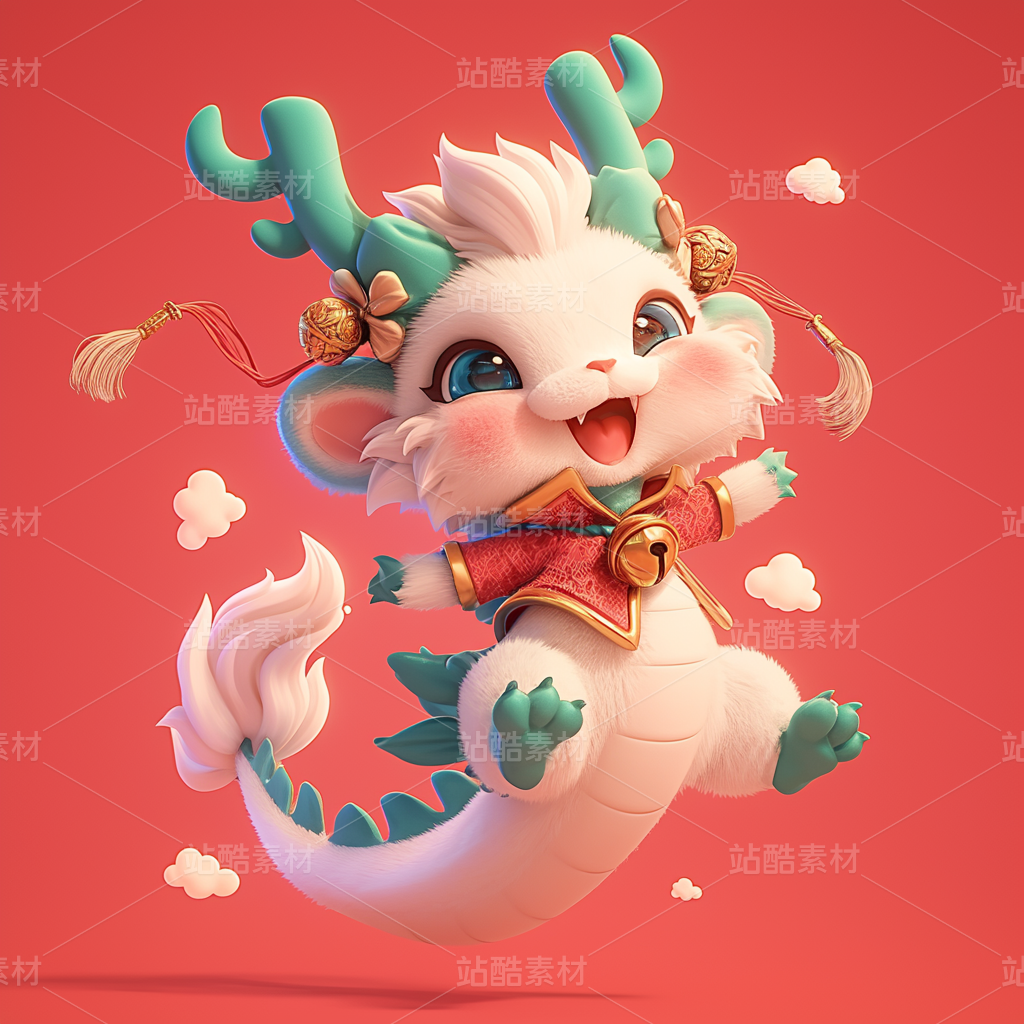 蛇年带着舞狮帽穿着红衣的可爱小蛇吉祥物