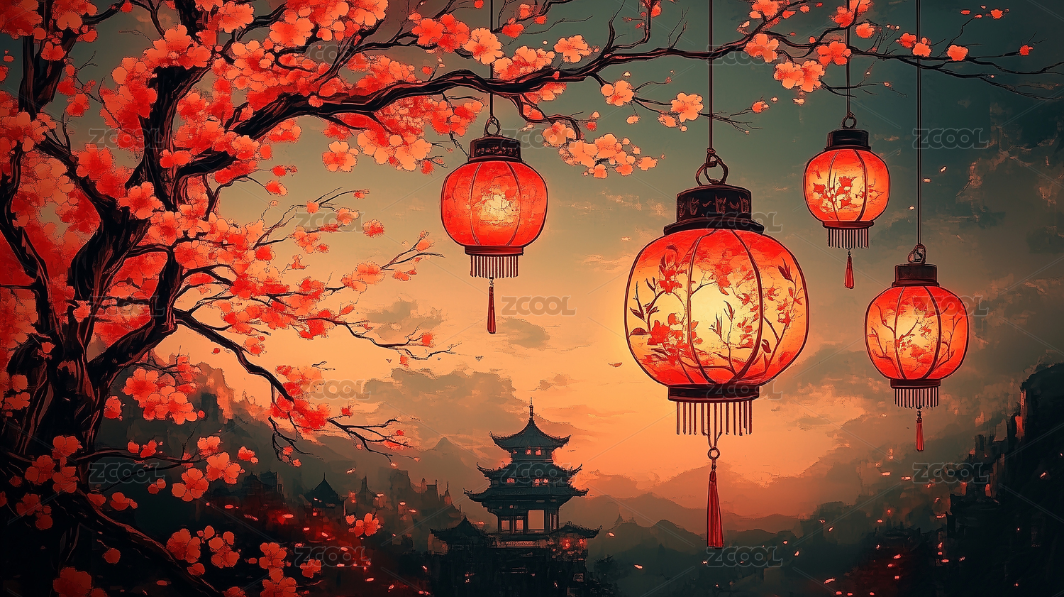 s1ckxgod0422_Chinese_brush_painting_lanterns_red_tones_8K_HD_br_036b3ed5-0a56-4974-9d26-98b3c14705f