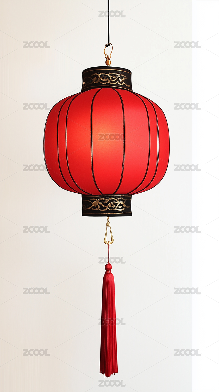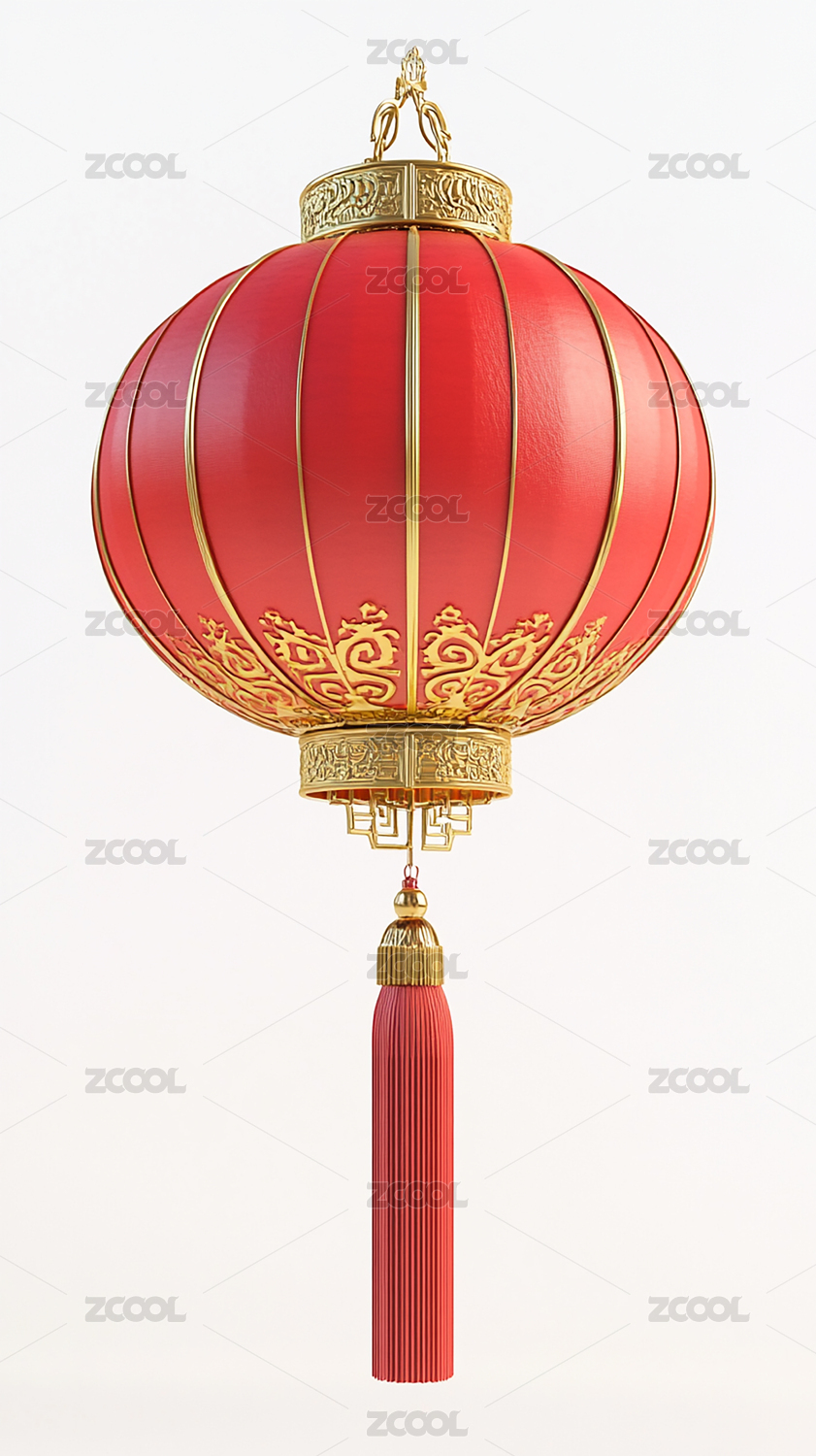 古典喜庆羊毛毡毛绒红色灯笼3D卡通插画
