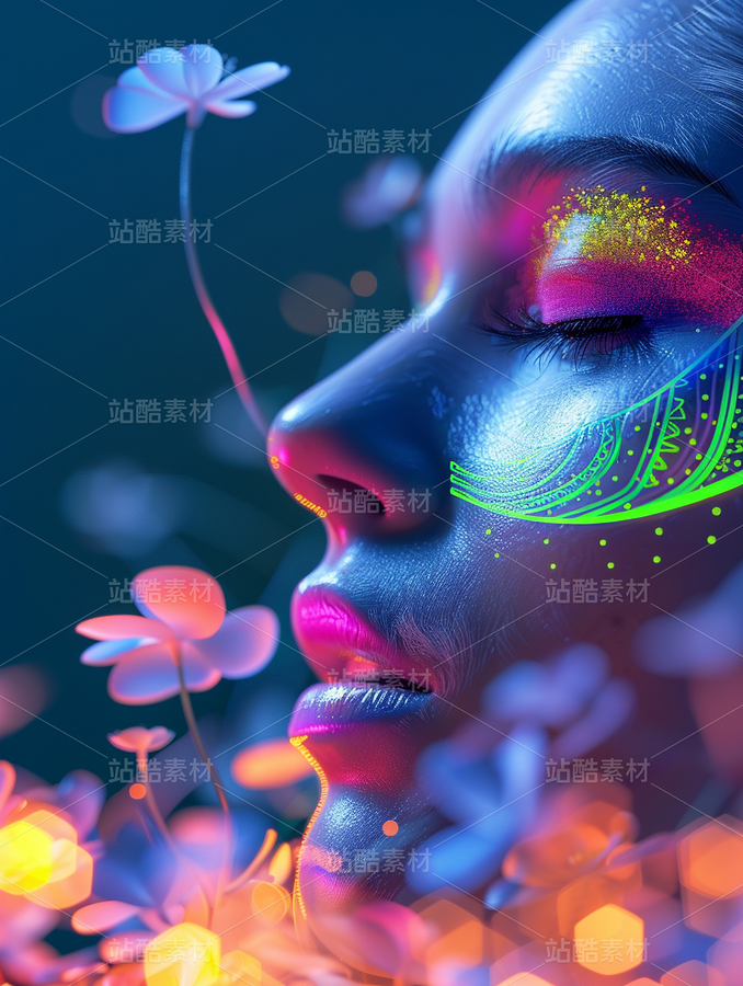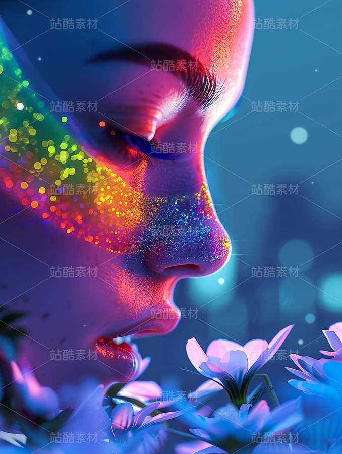 彩色3D抽象艺术意境美花朵空间自然