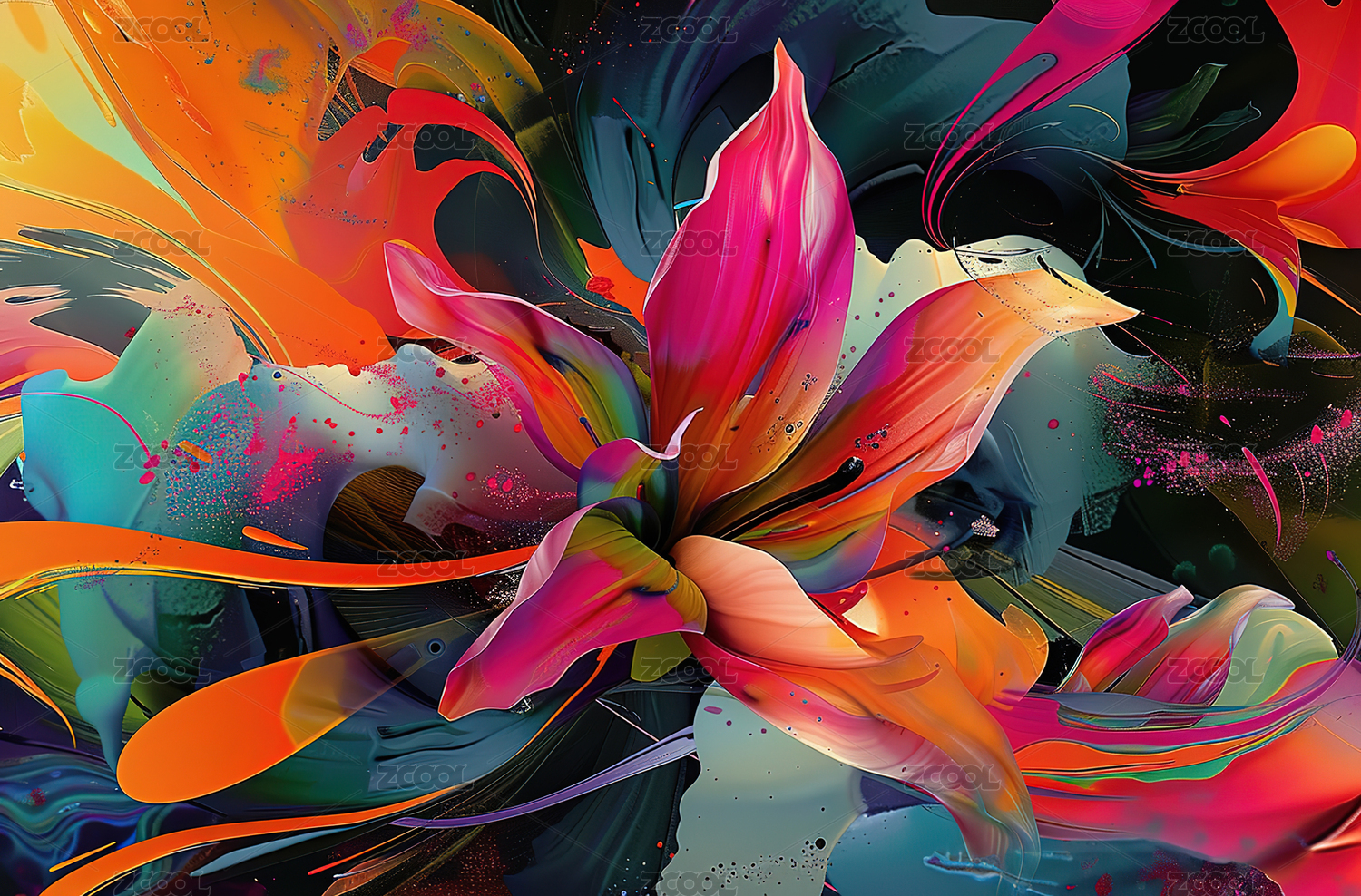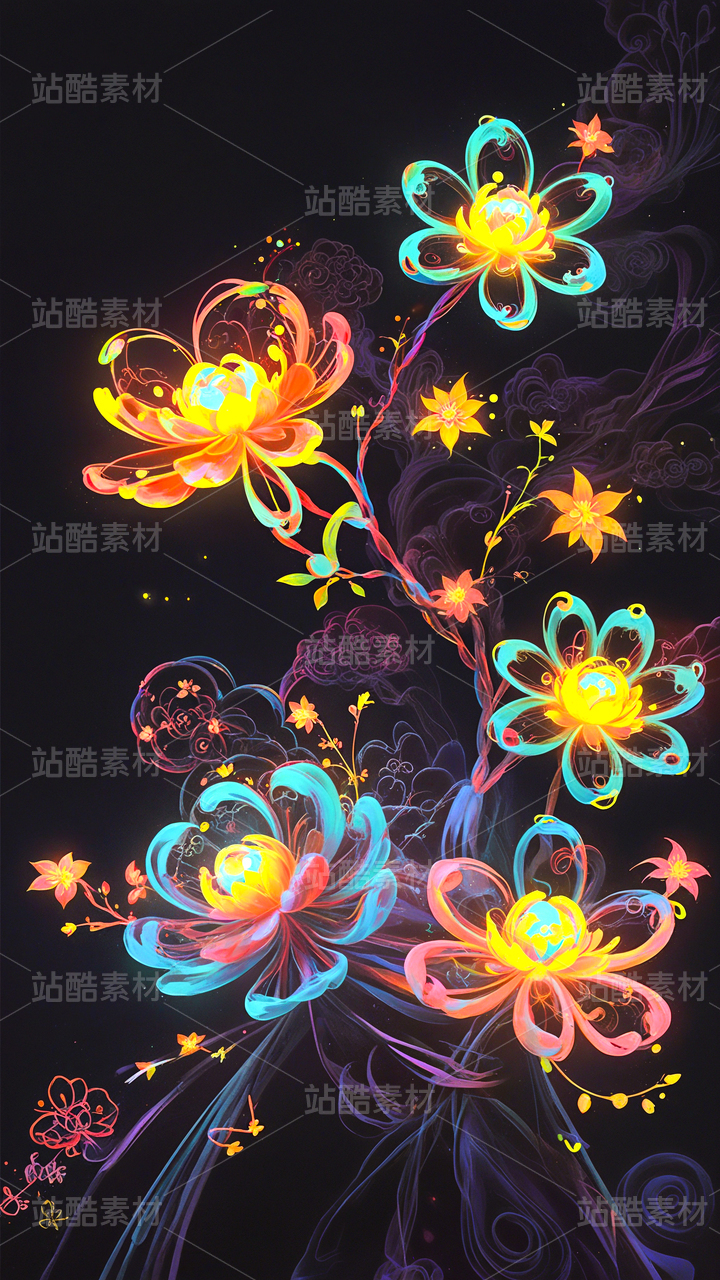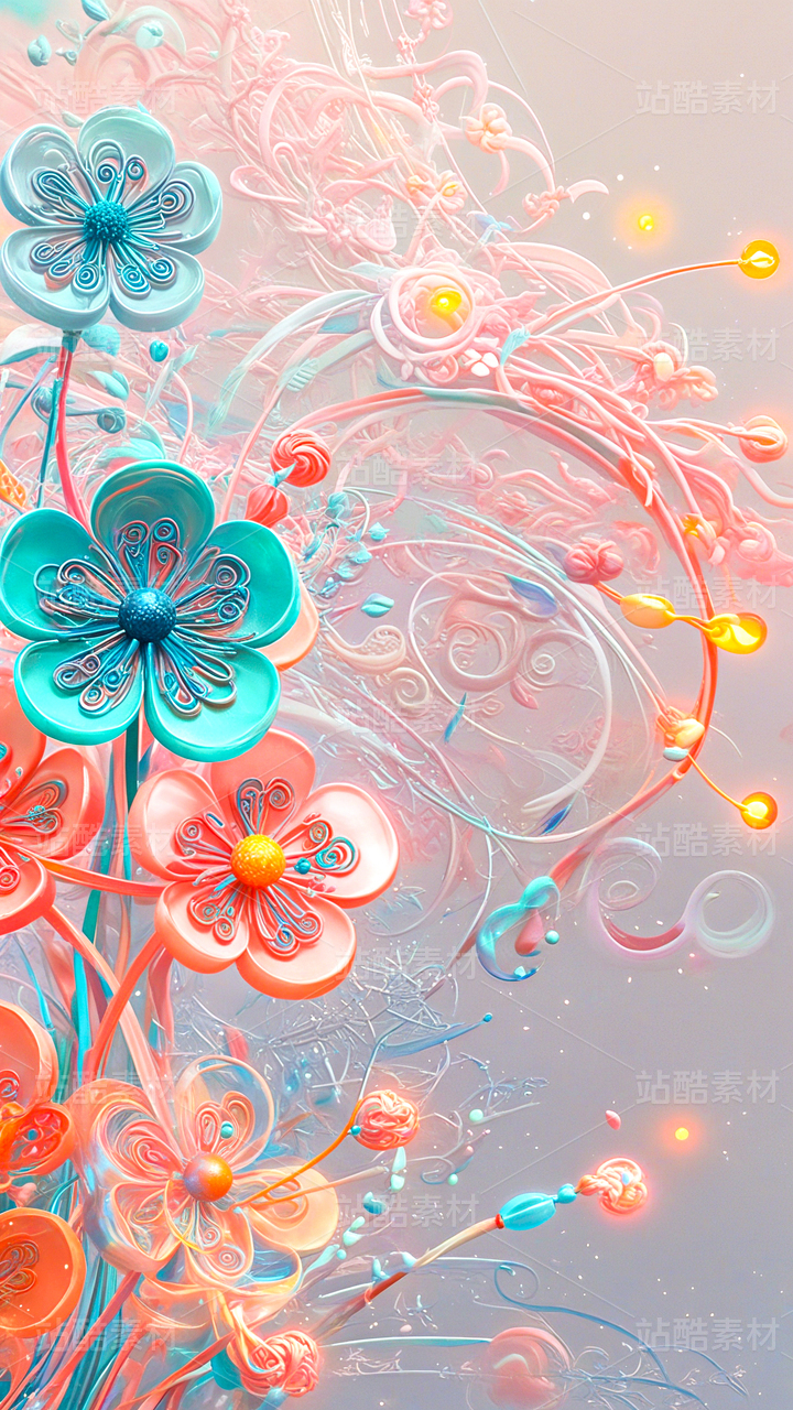 彩色3D抽象艺术意境美花朵空间自然