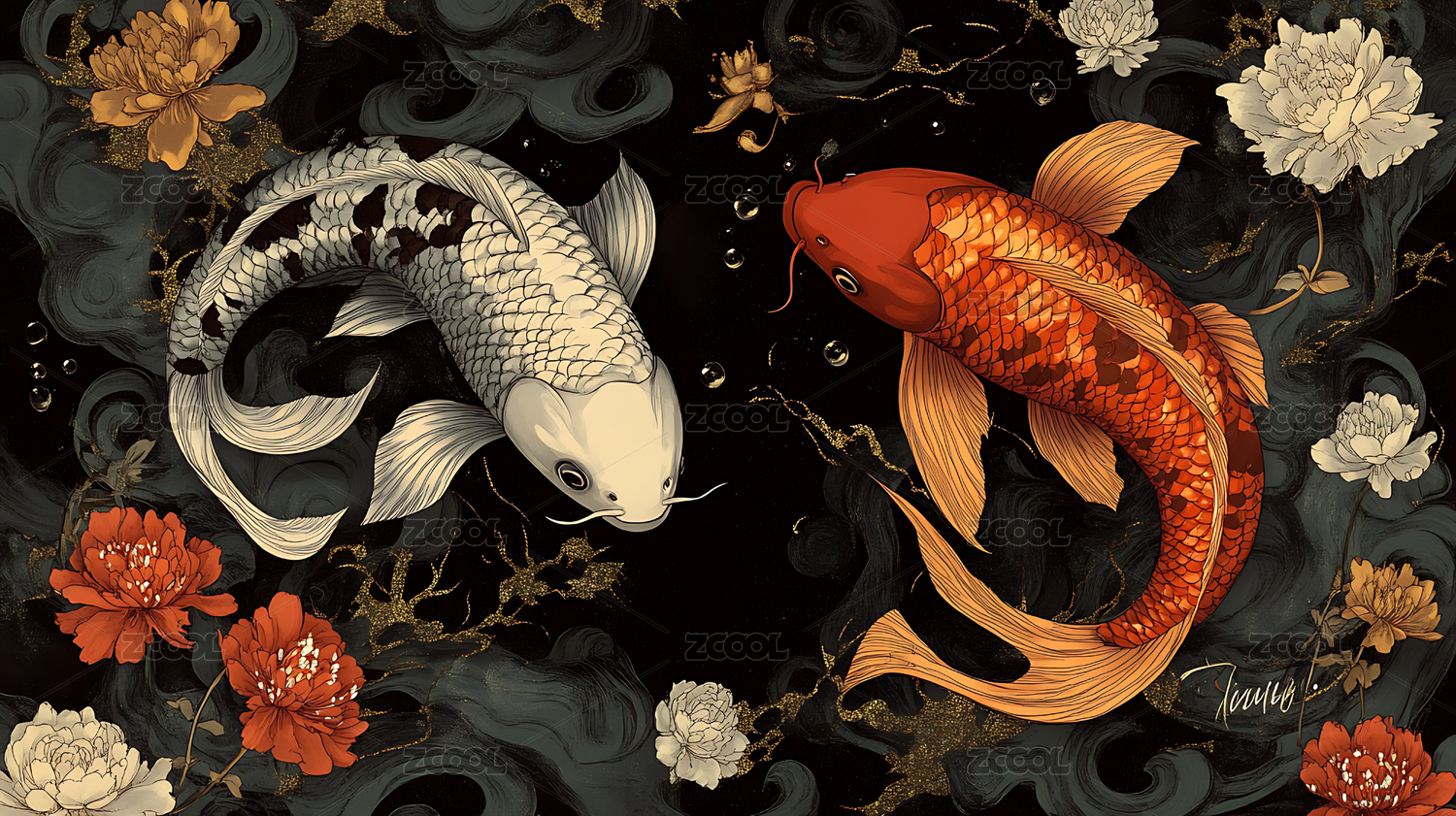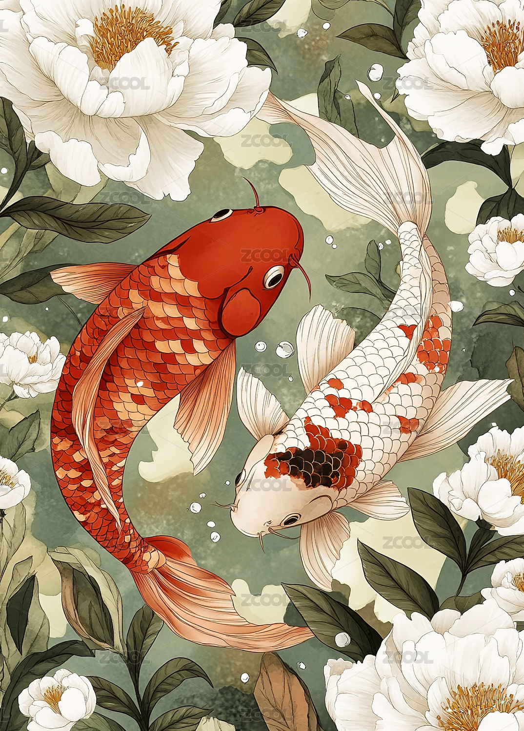 锦鲤年画中国风素材图片锦鲤年画中国风素材图片