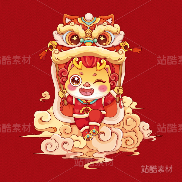 可爱的中国舞狮卡通形象