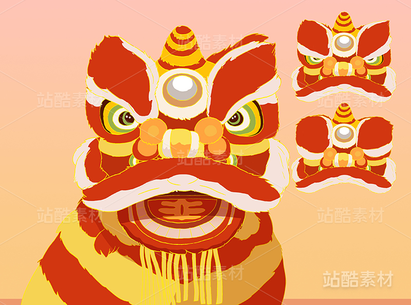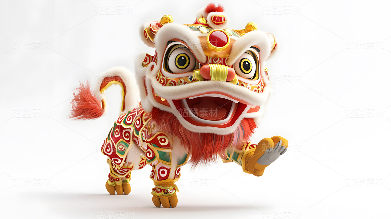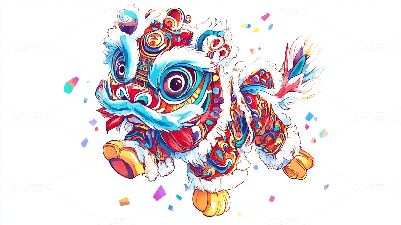 国潮喜庆醒狮头饰舞狮新年春节元素
