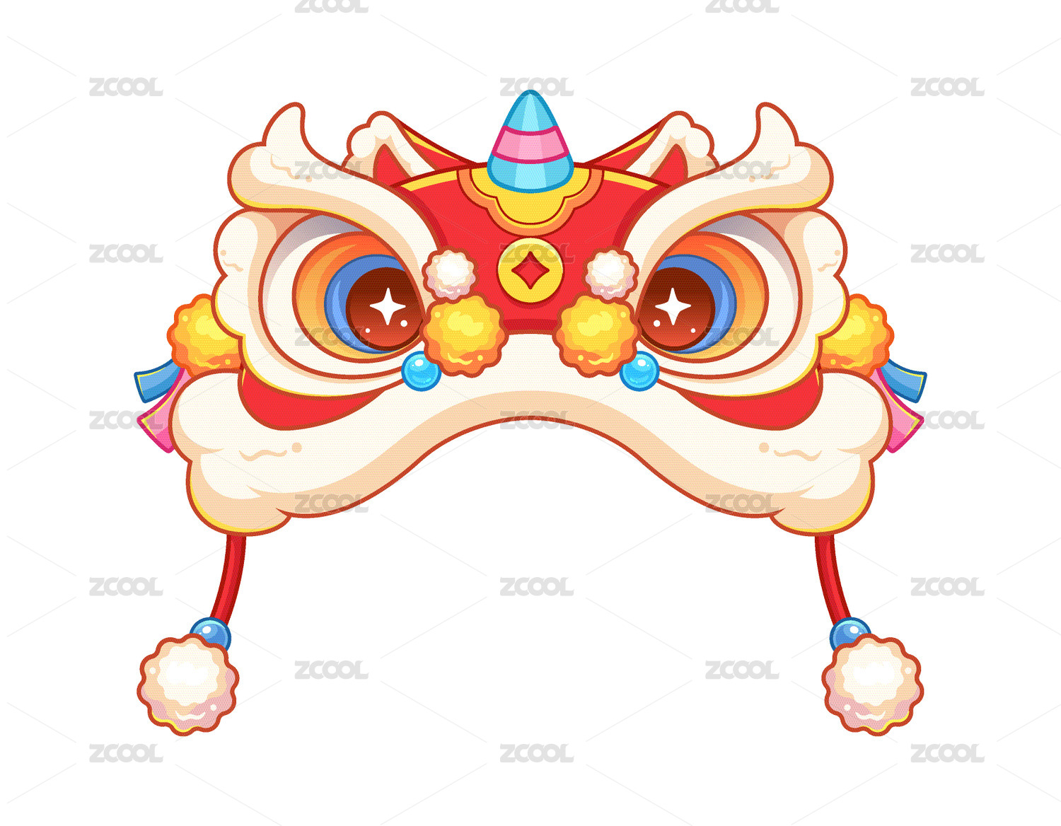 卡通醒狮帽矢量插画