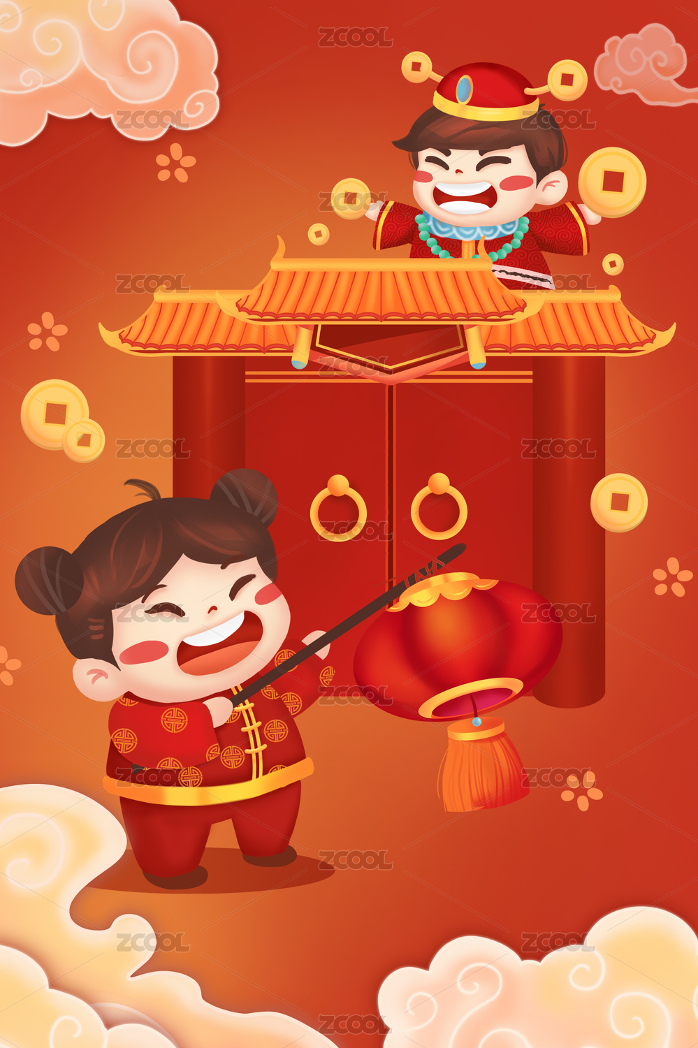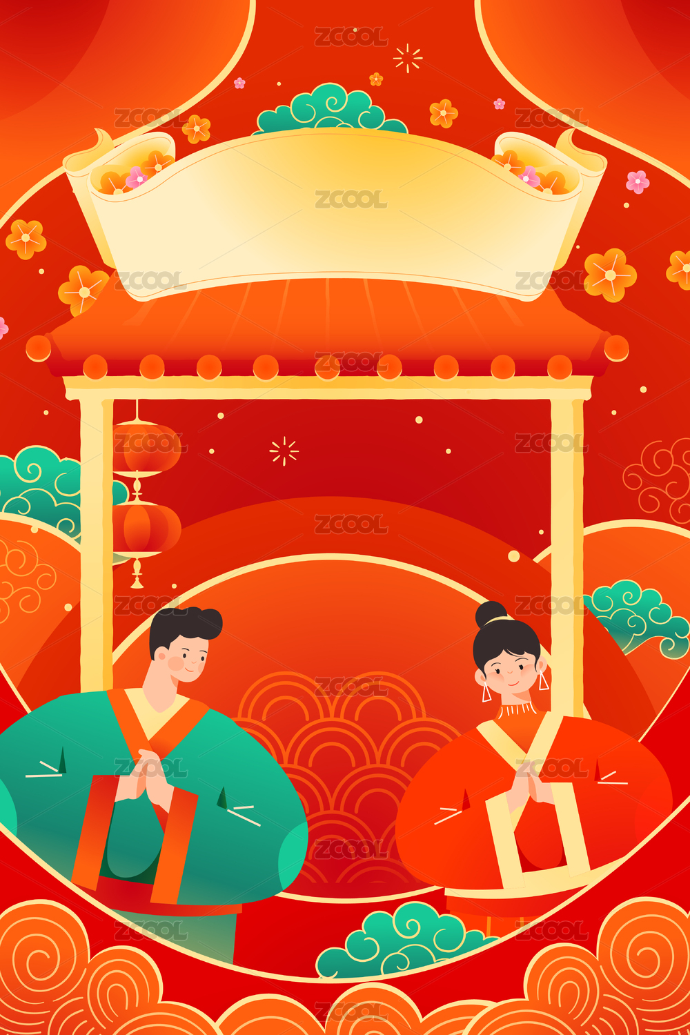 欢度春节除夕舞狮扭秧歌喜庆贺图