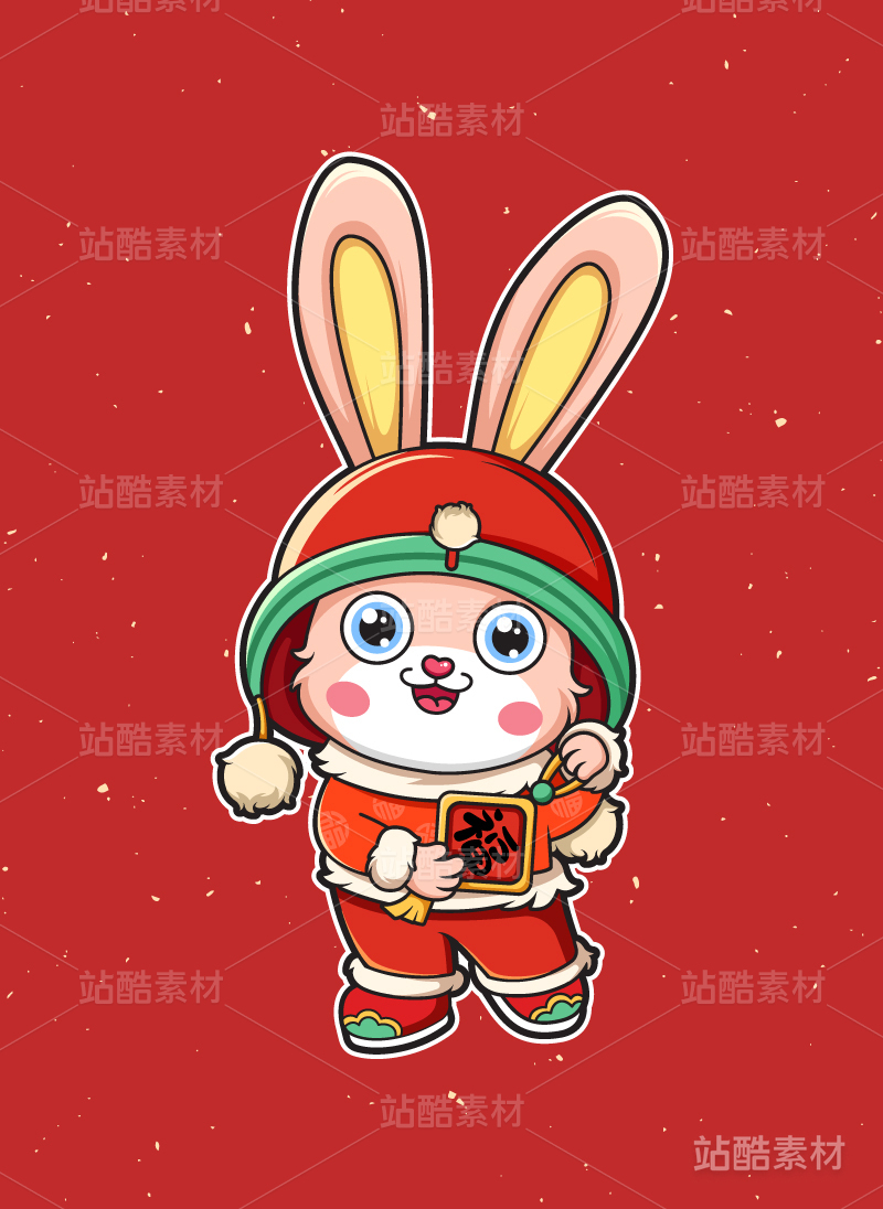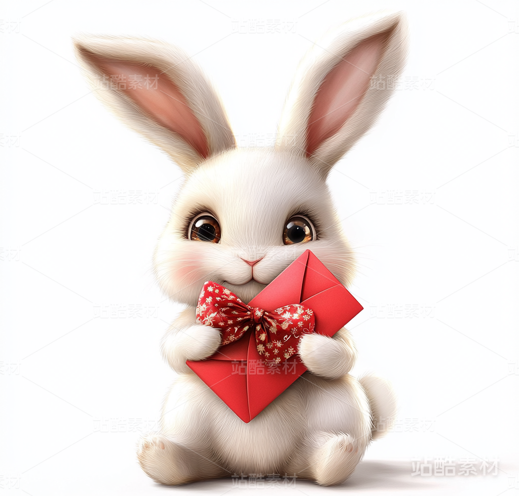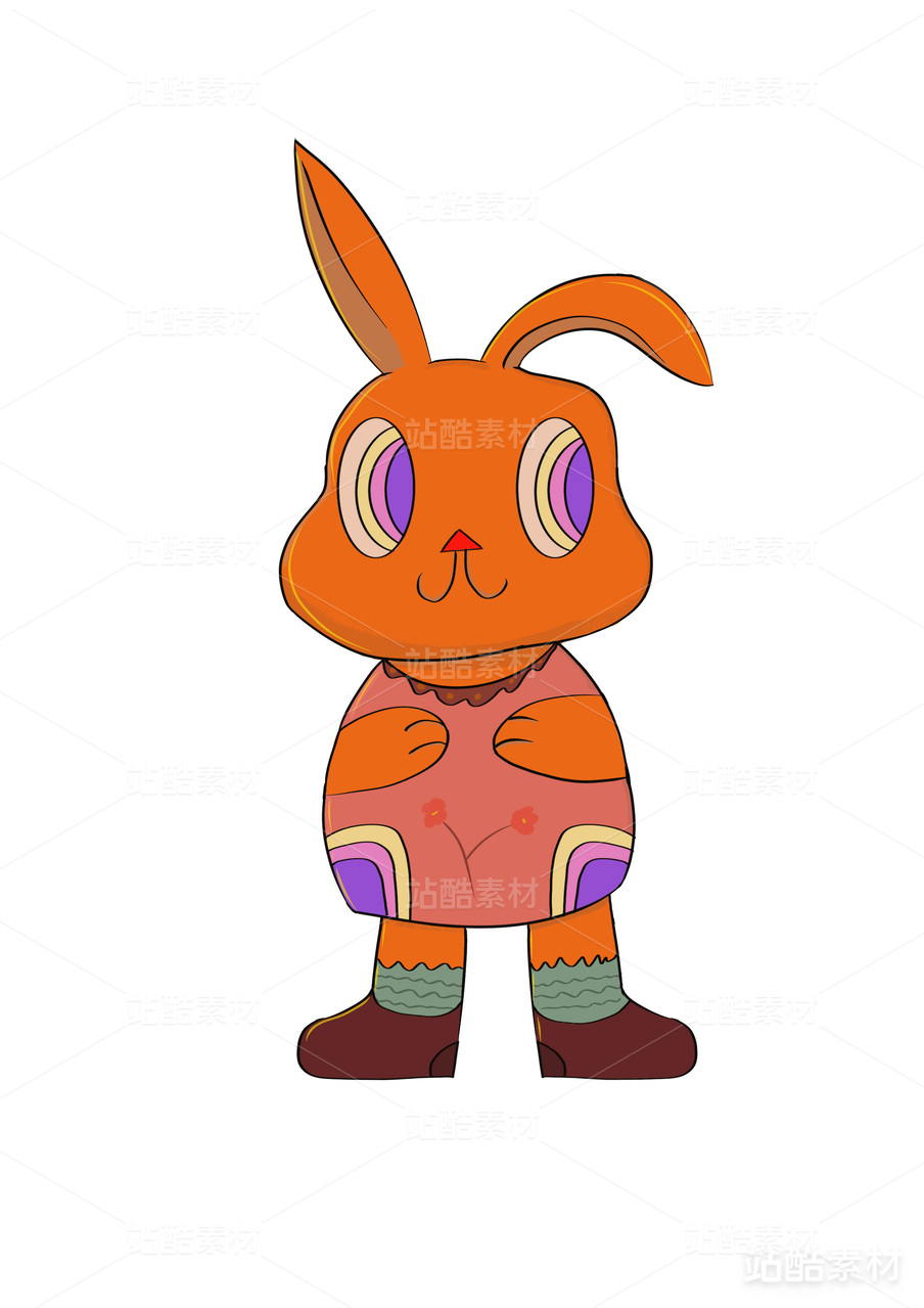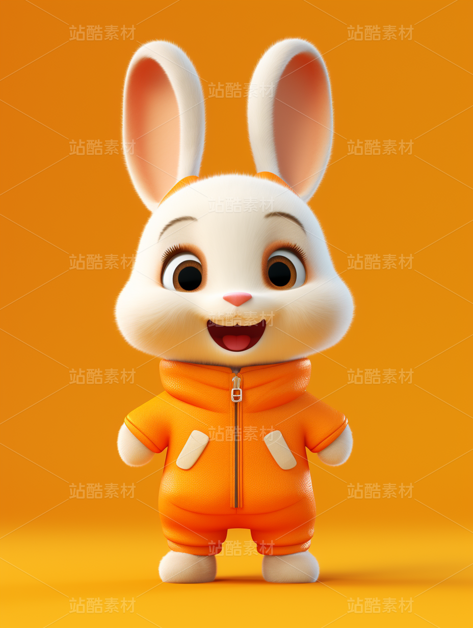 彩色3D卡通动物宠物兔子制服办公室橙色