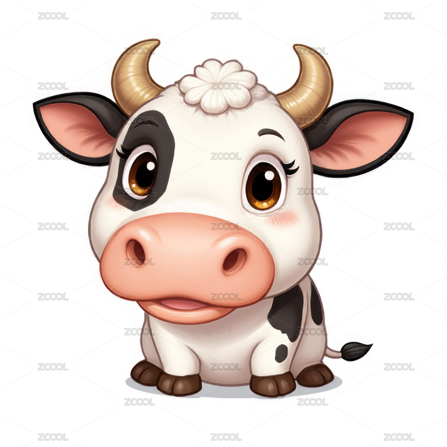 卡通奶牛的可爱瞬间憨态可掬的卡通牛宝宝