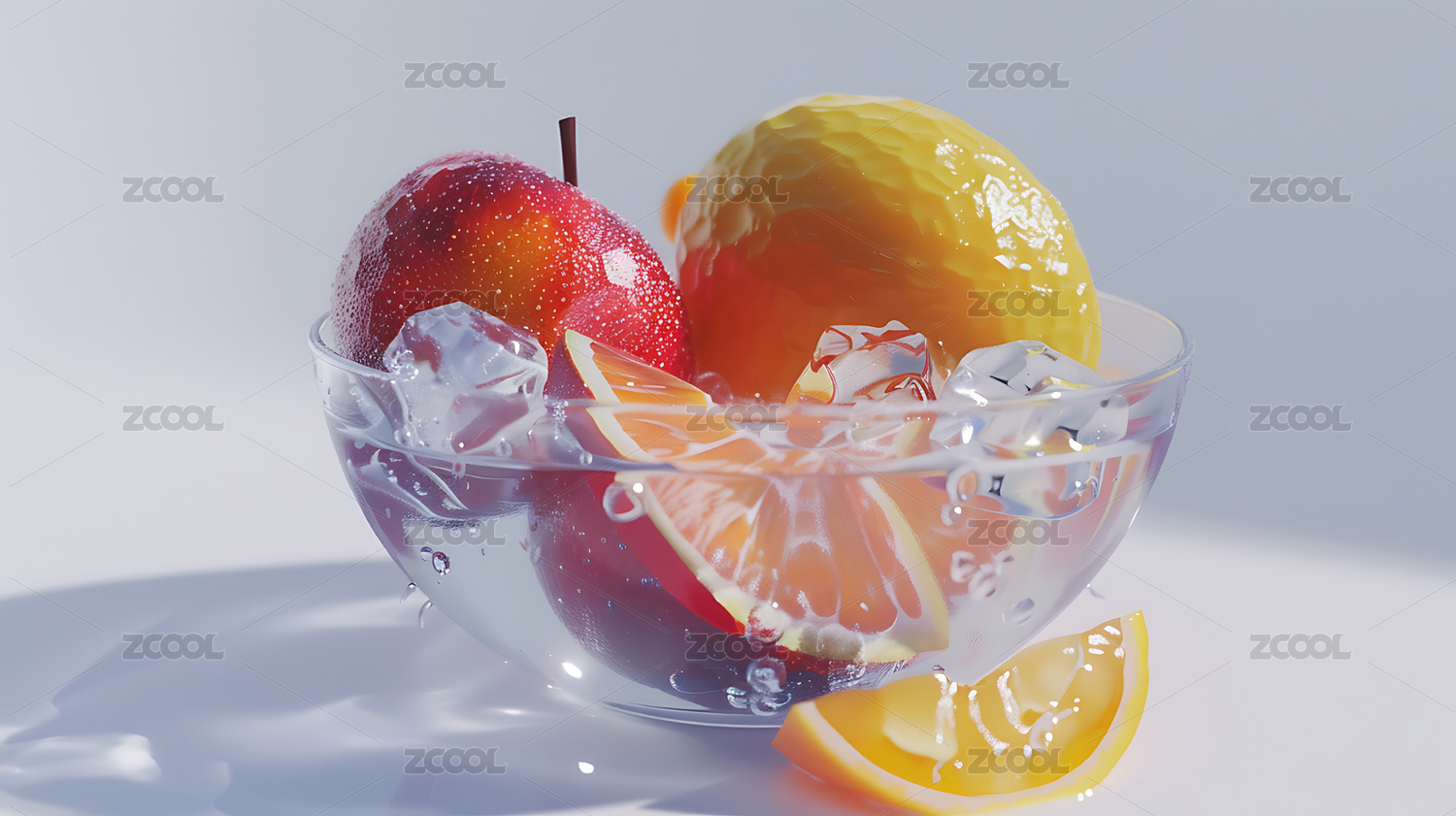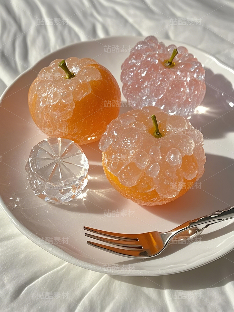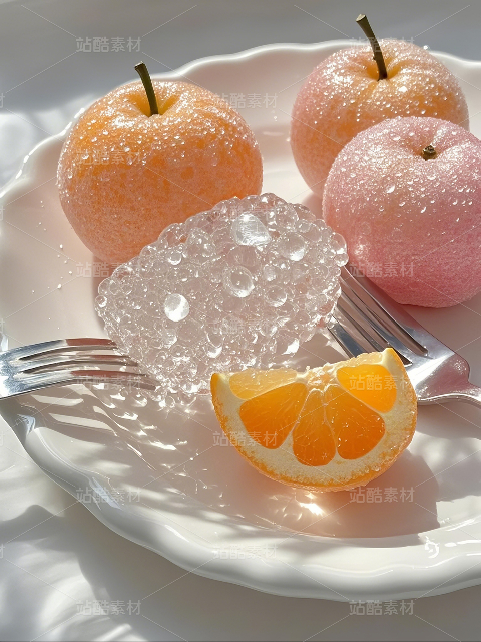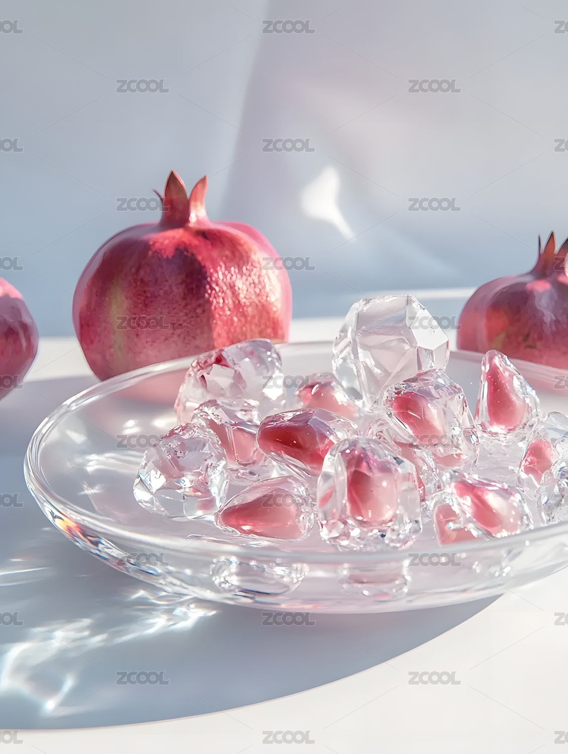 白色的瓷盘中的粉色水晶苹果小场景壁纸