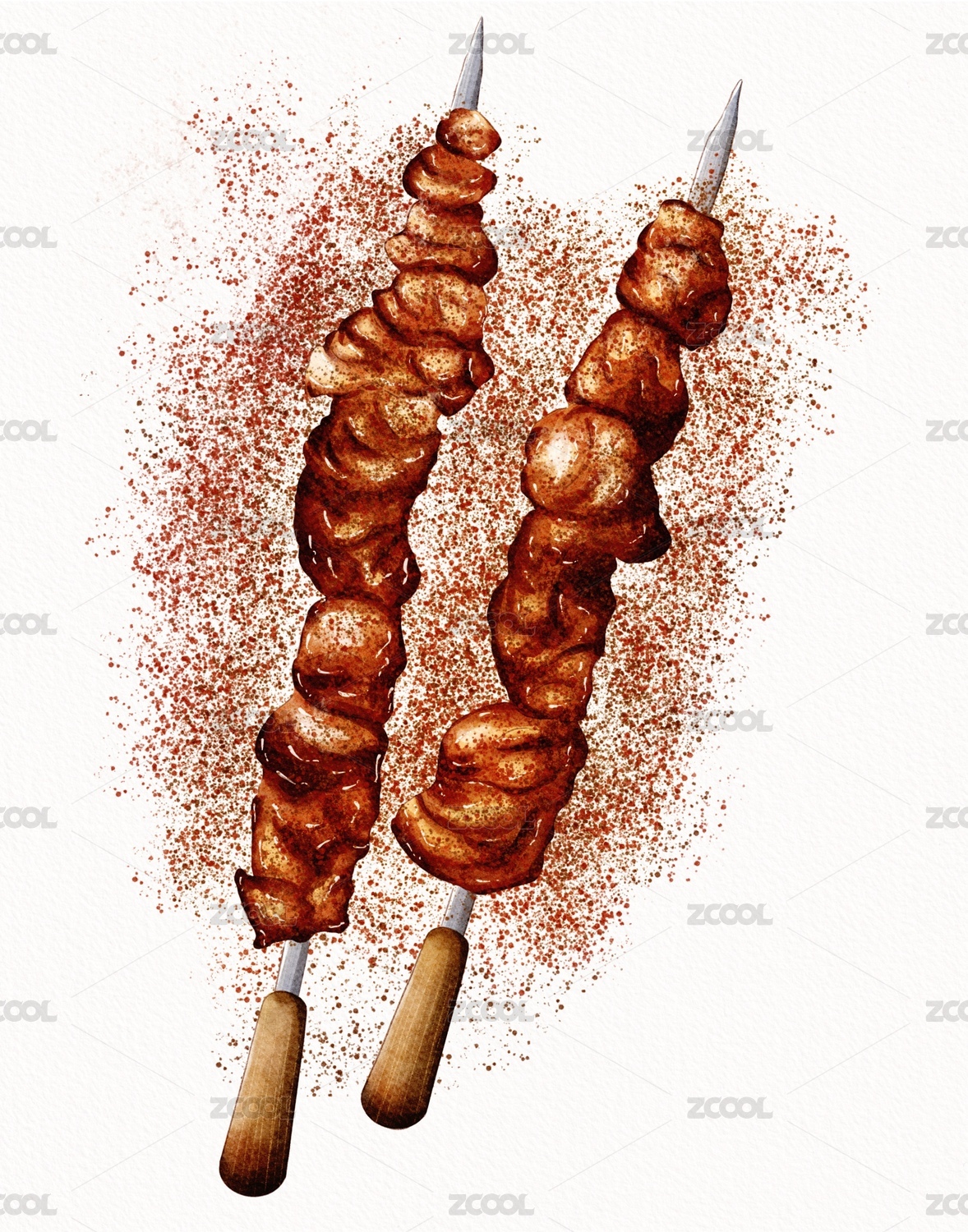 传统美食小吃烧烤羊肉串牛肉串烤串