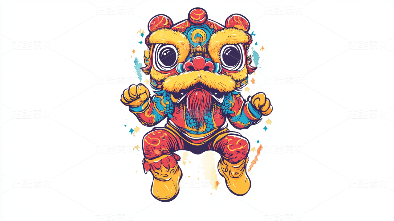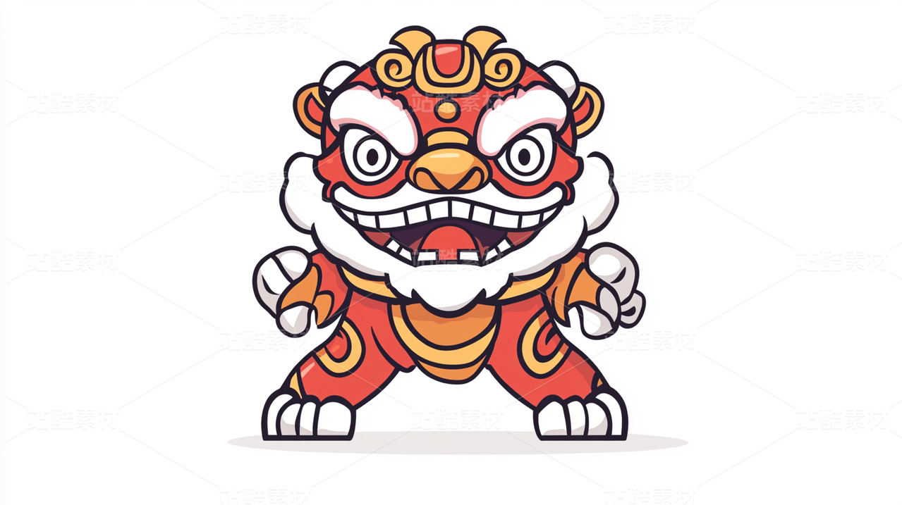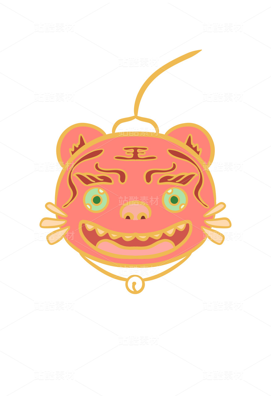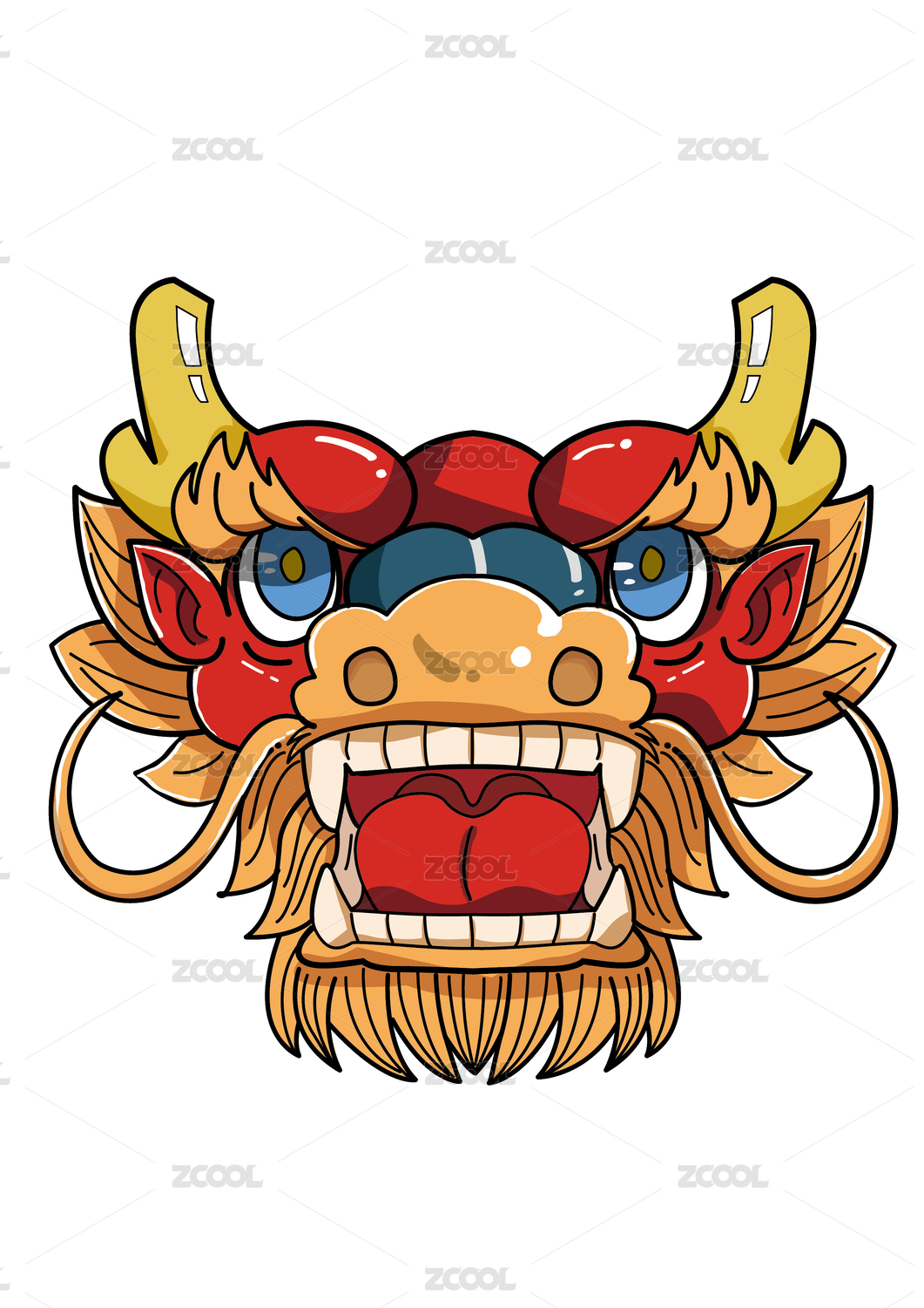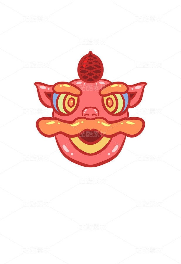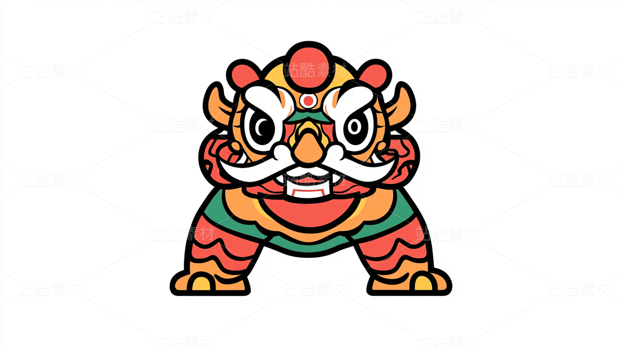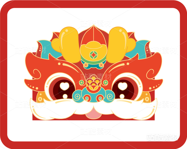 牛年春节舞狮狮子头扁平描边矢量插画图标