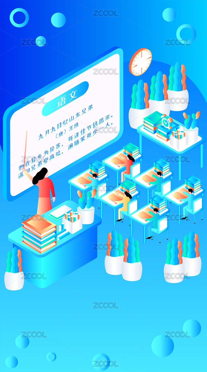 学生上语文课简约炫彩科技风矢量插画