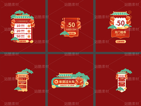 购物狂欢仙鹤锦鲤红包雨插画海报