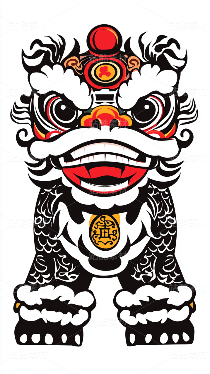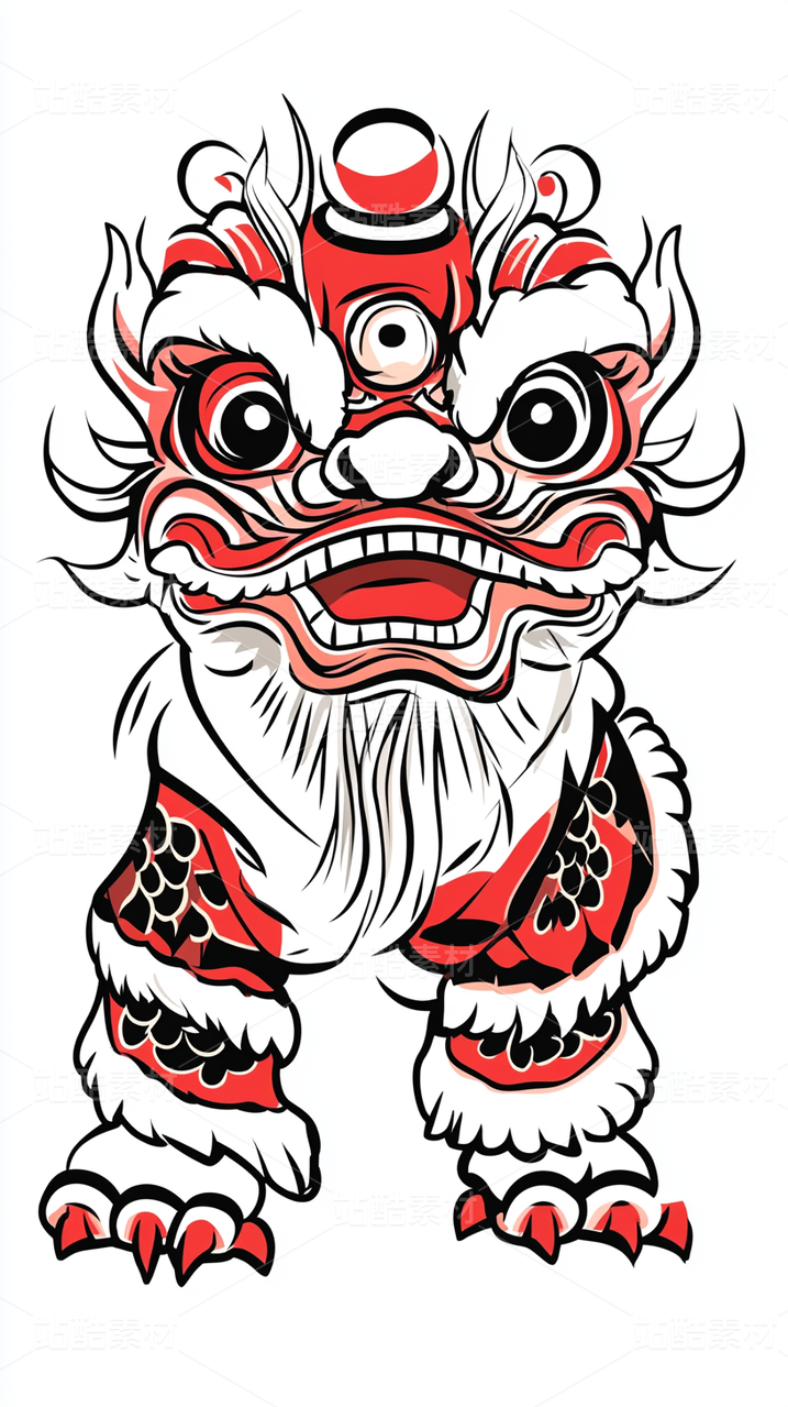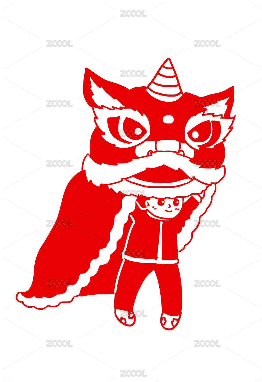 红色剪纸狮子图案
