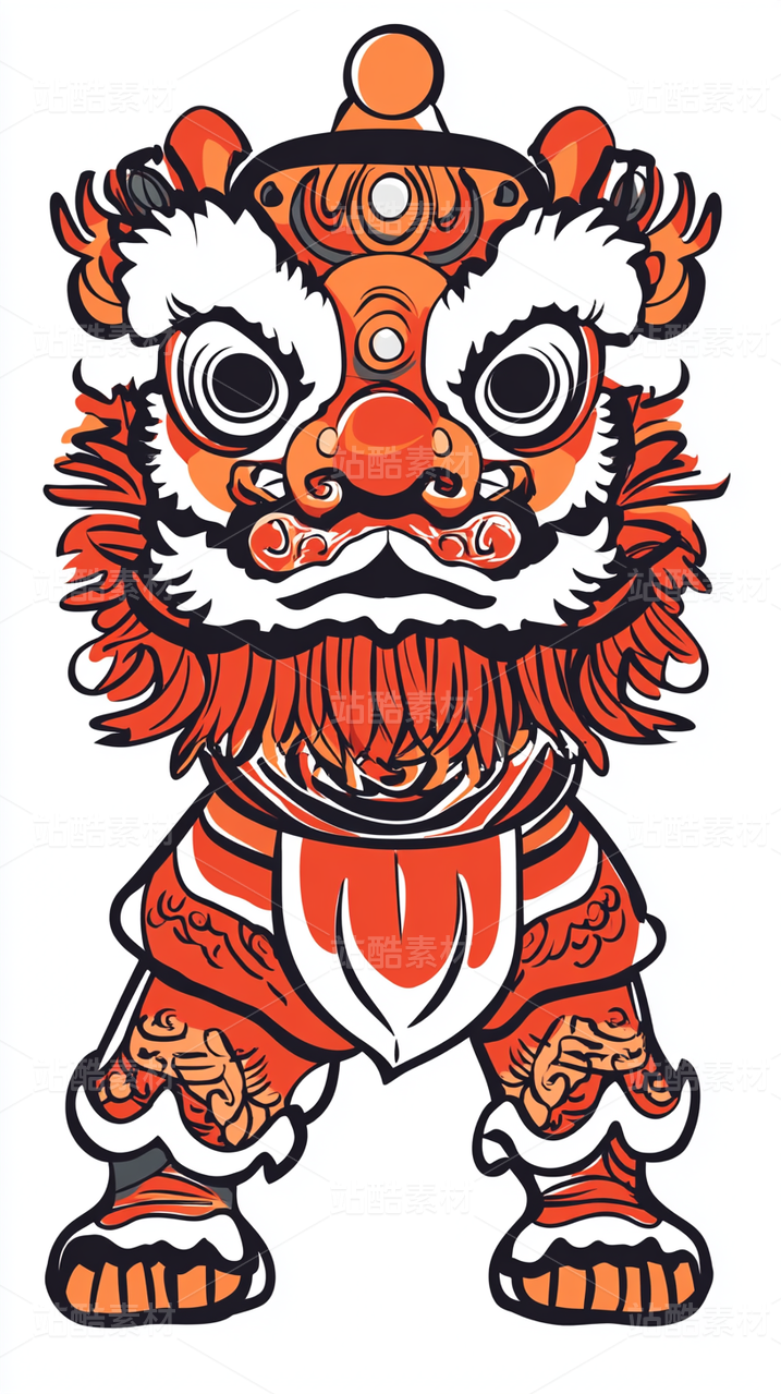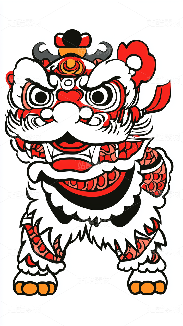 红色背景下的舞狮红包封面插画