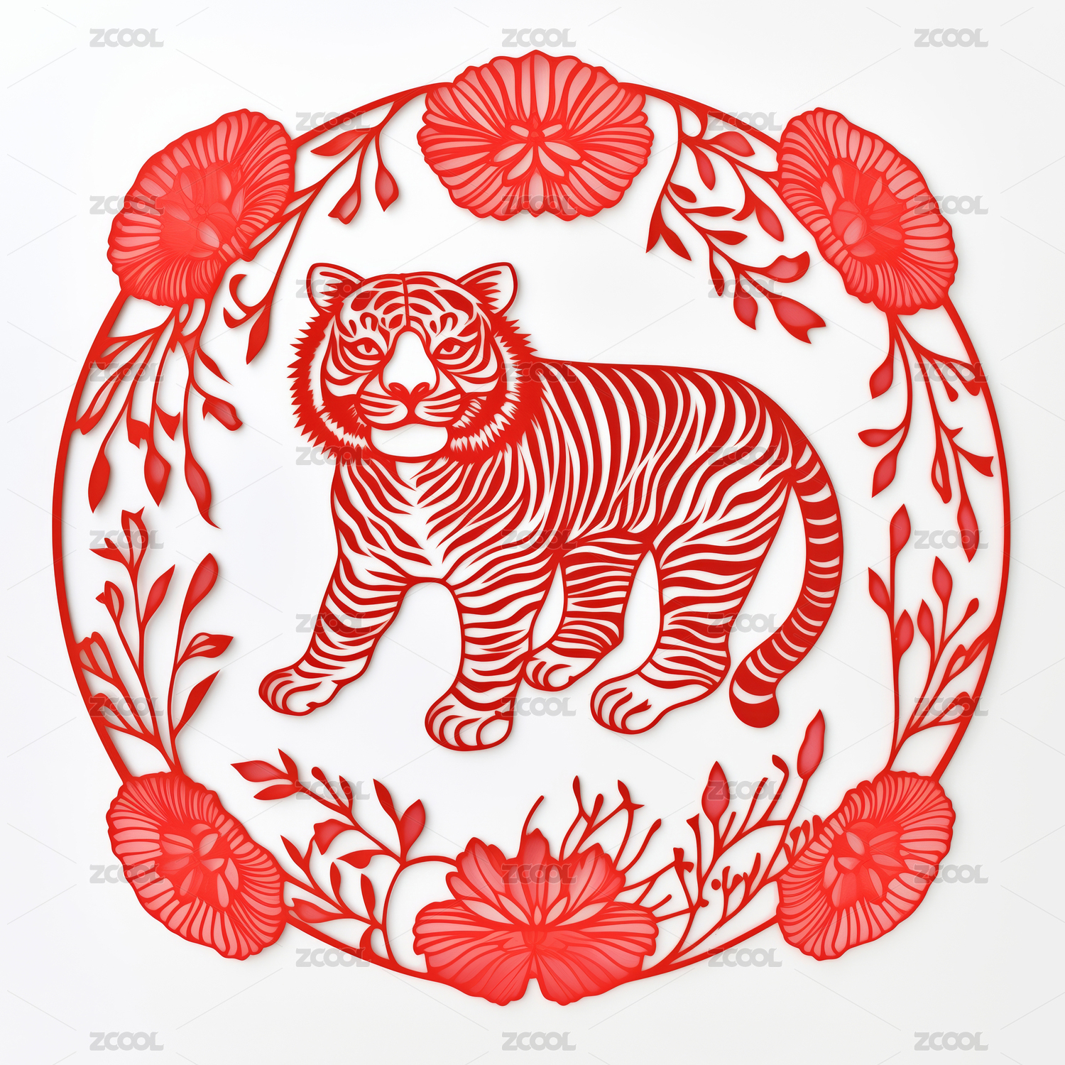 虎年春节十二生肖红色圆形剪纸元素
