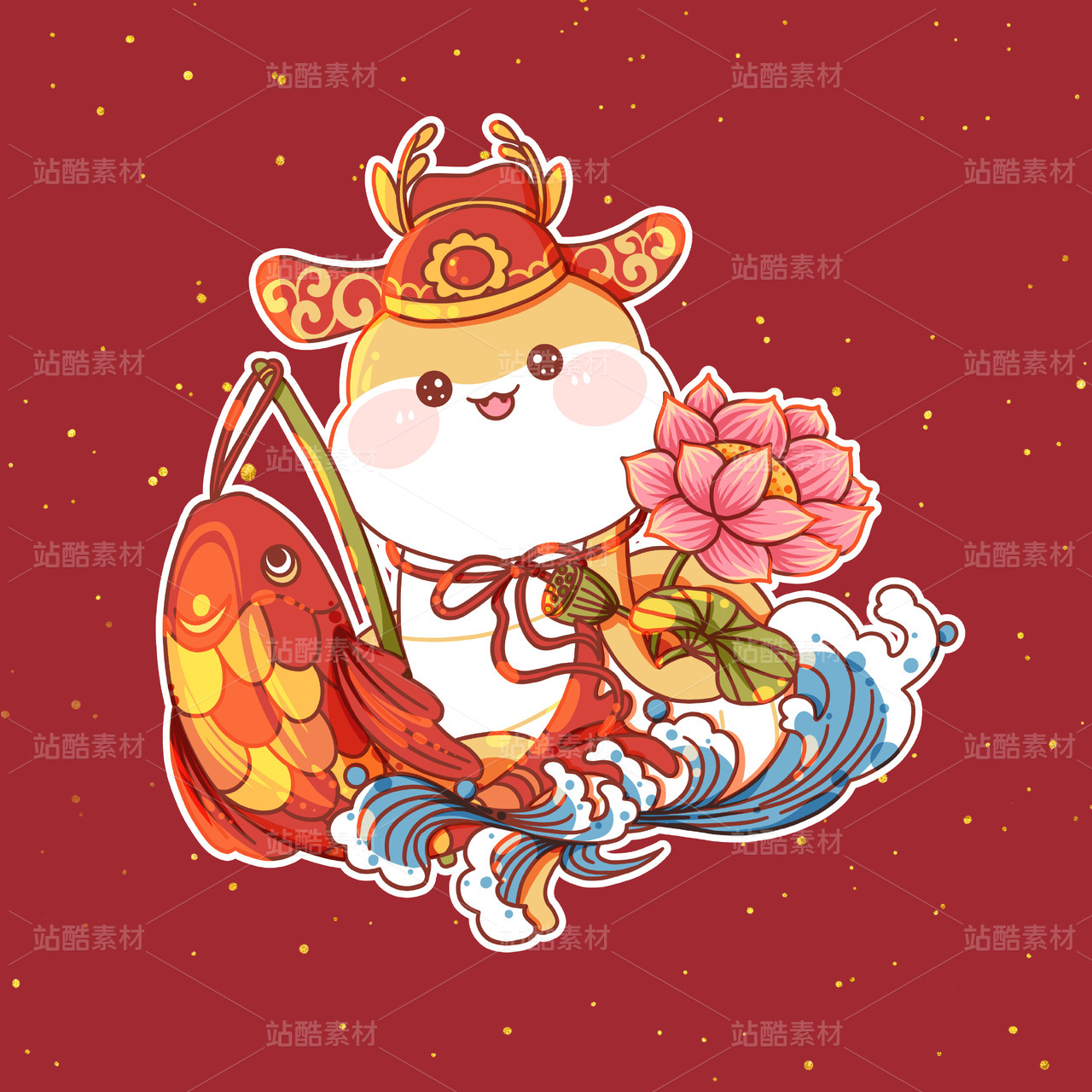 新年 插画 马 马年 抱鱼娃娃 元宝 PNG