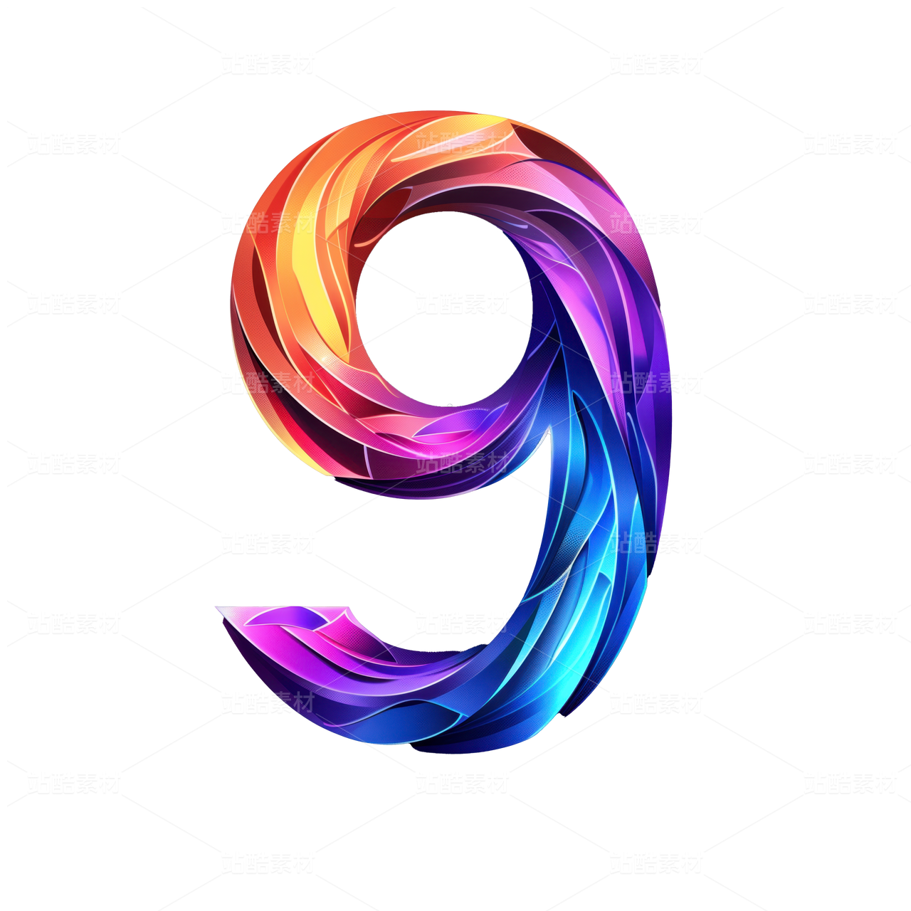 酷炫时尚,色彩缤纷,充满活力的阿拉伯数字一套