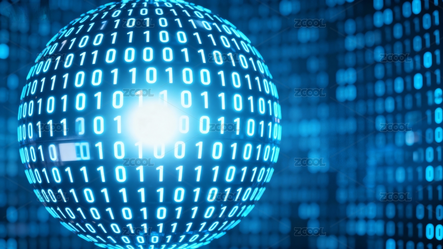 蓝色二进制代码球体科技感