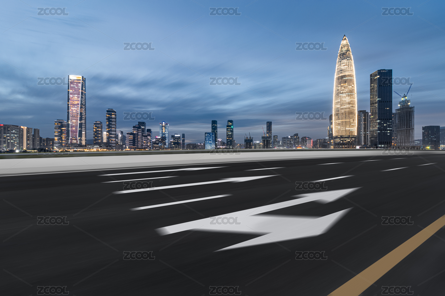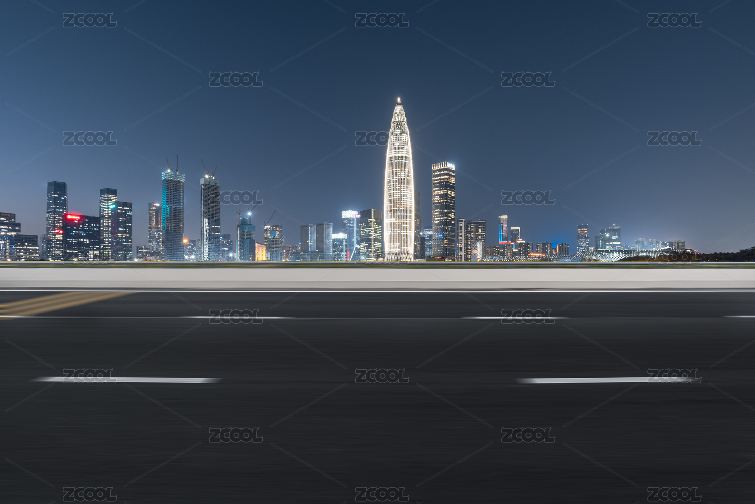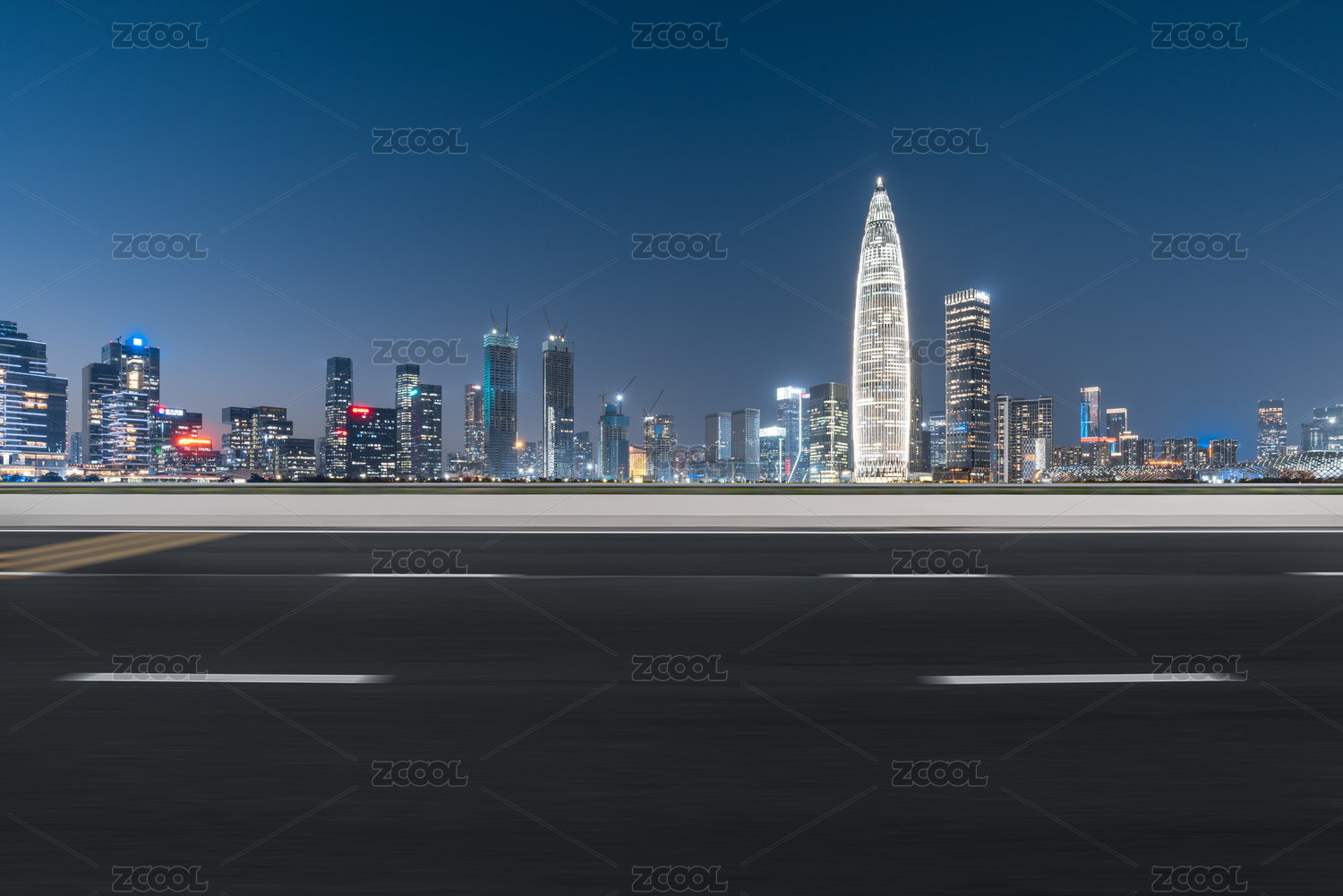 中国广东深圳后海金融区夜晚天际线和机动车道