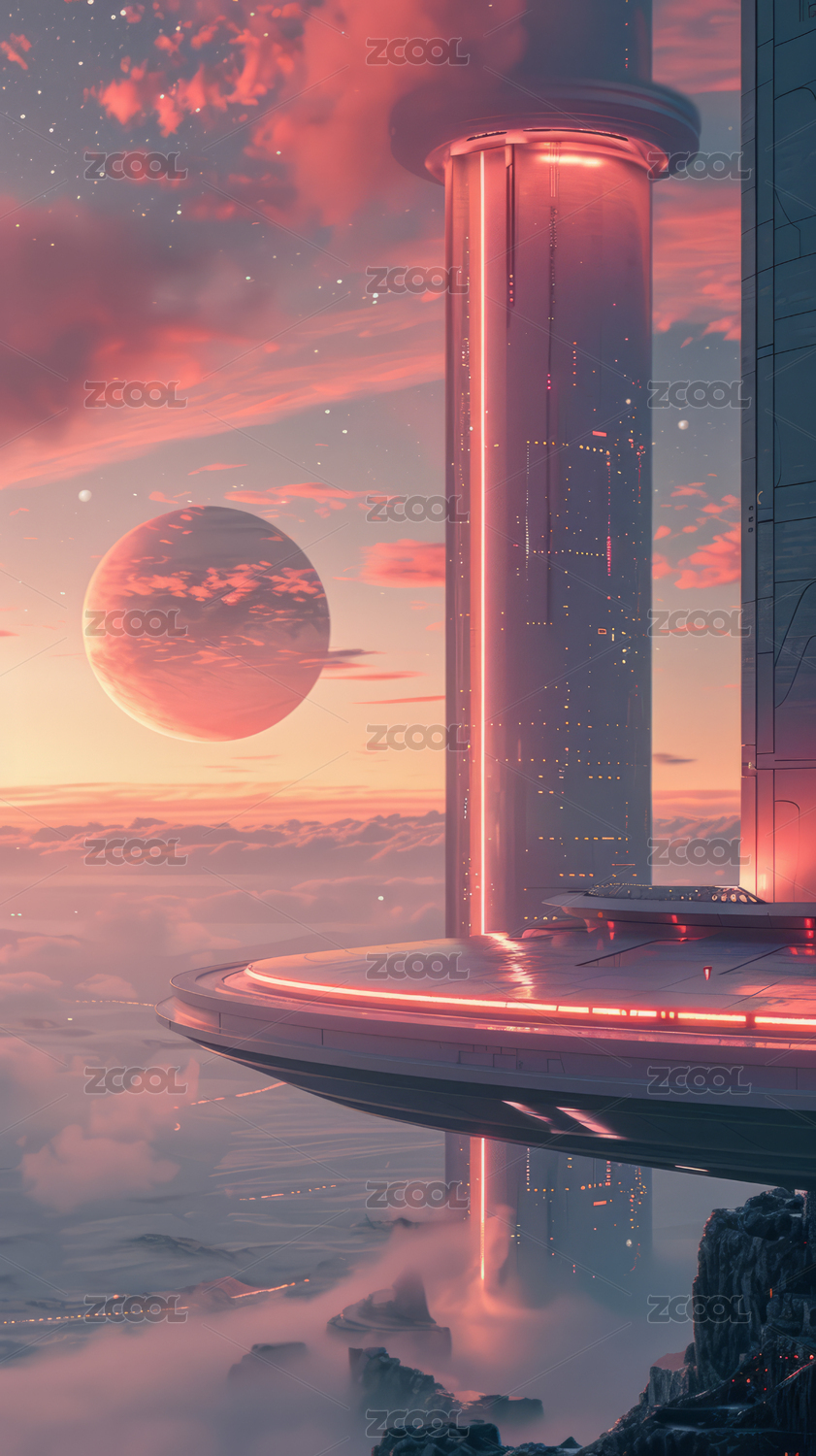 未来,城市,星球,天际线,高山,现代,建筑,云,灯光,窗户