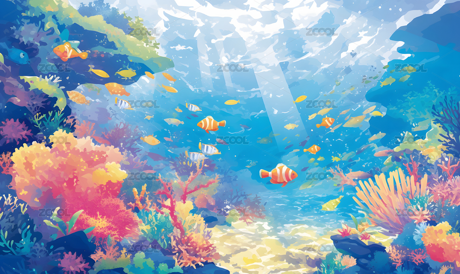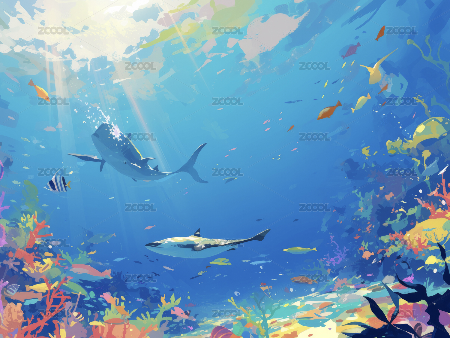 白天阳光海底世界唯美插画