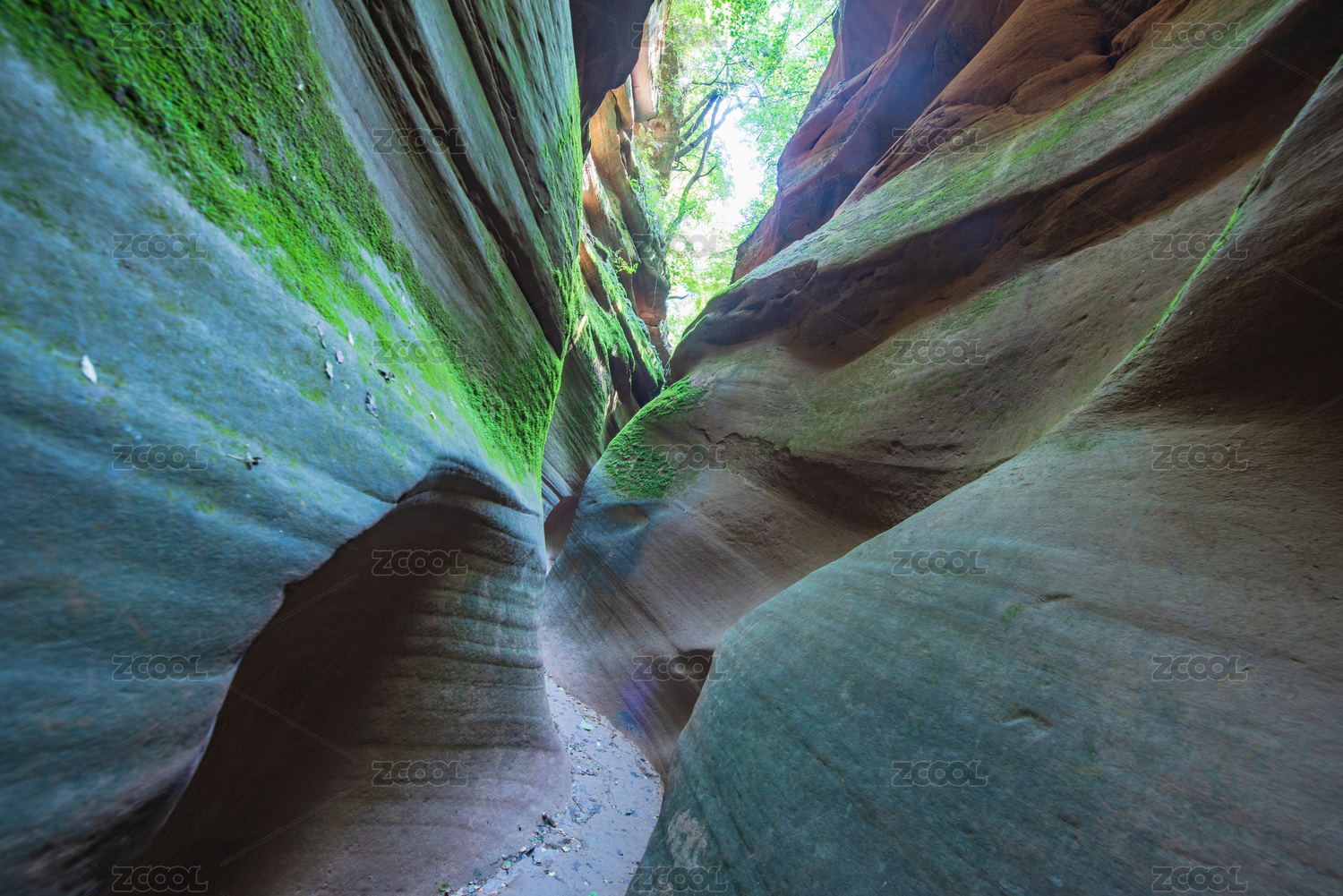 陕西,延安,甘泉县,雨岔大峡谷,峡谷,苔藓,生机,岩峰,曲线,光线