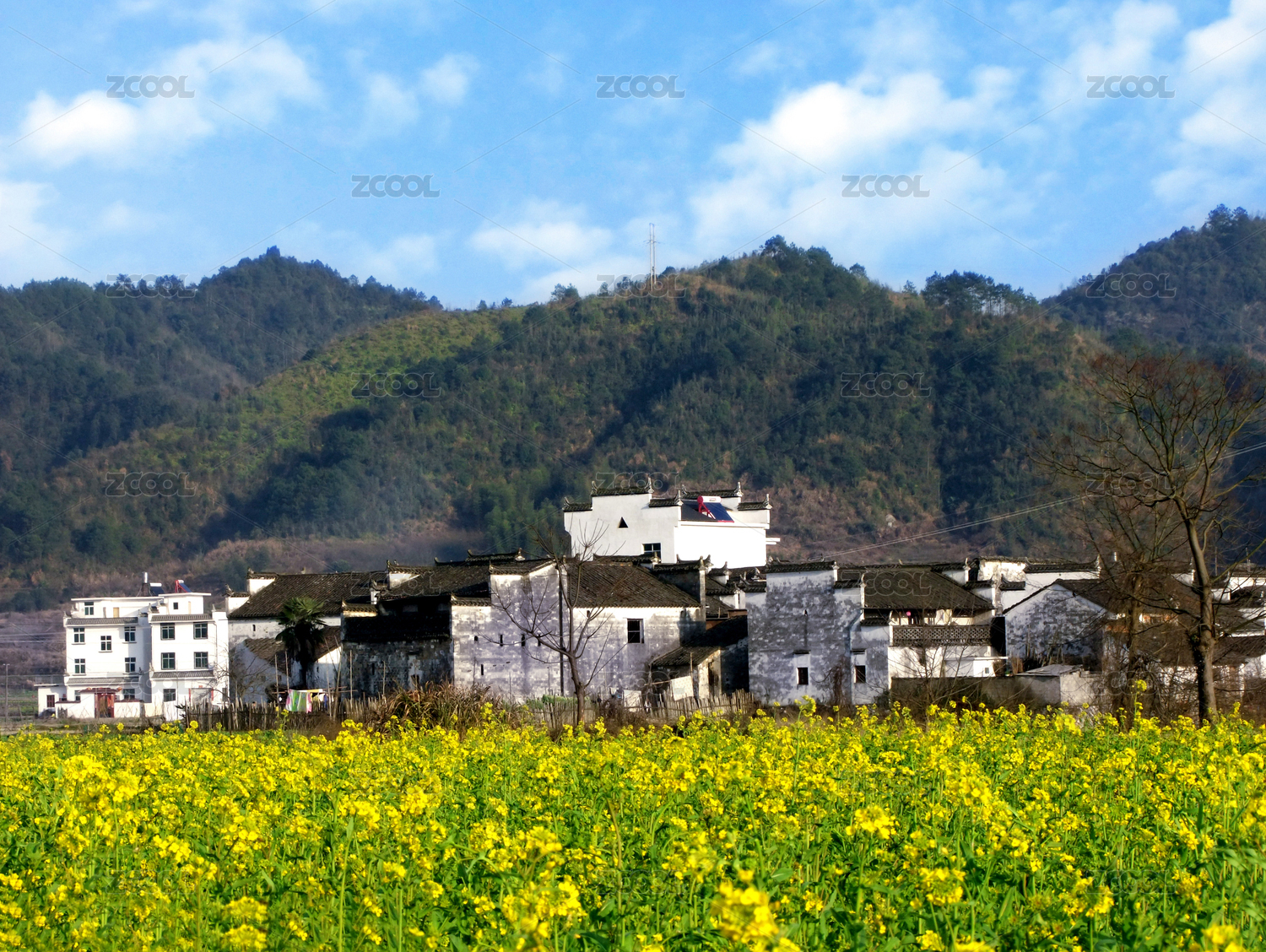 安徽省宣城市绩溪县龙川油菜花田园风光