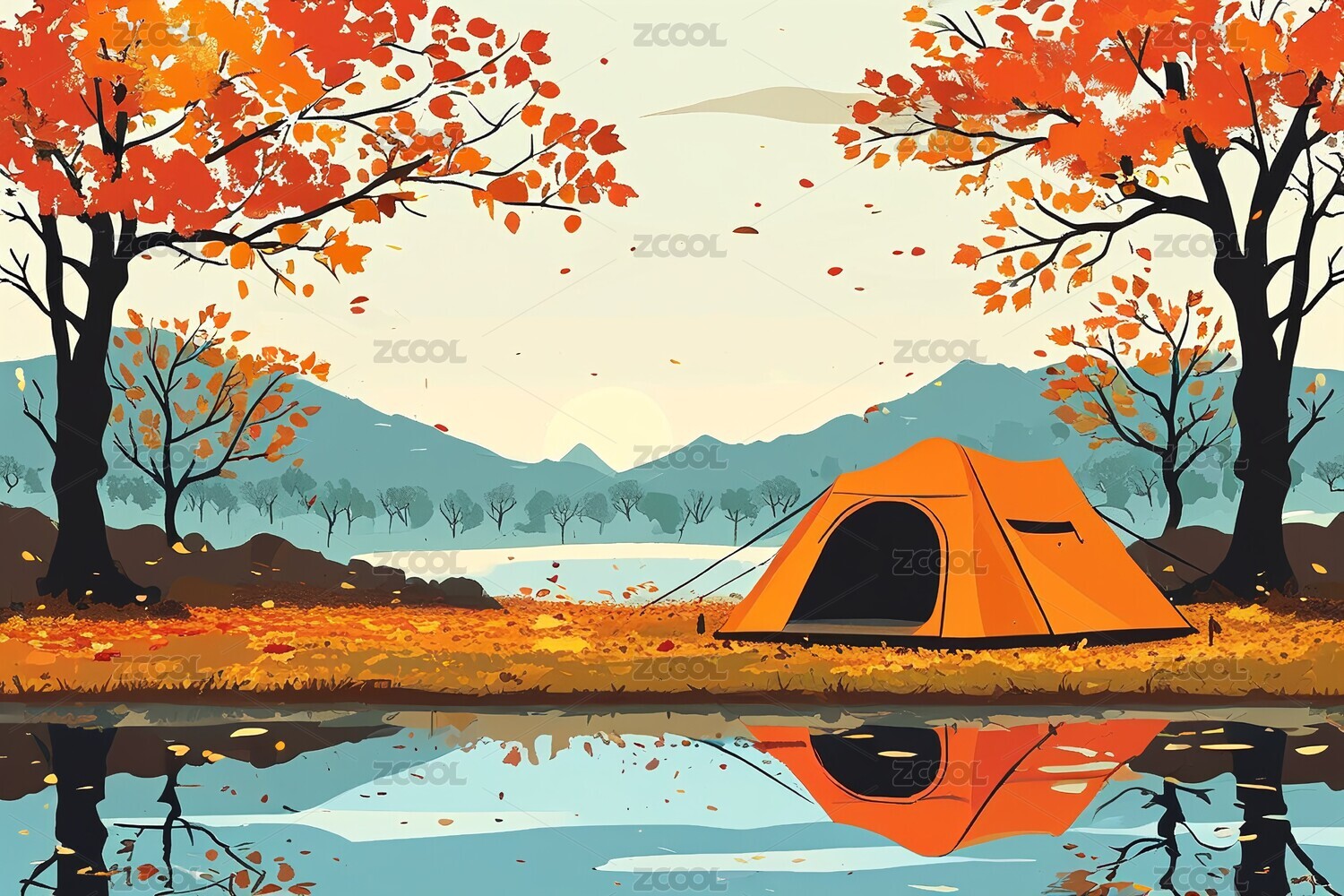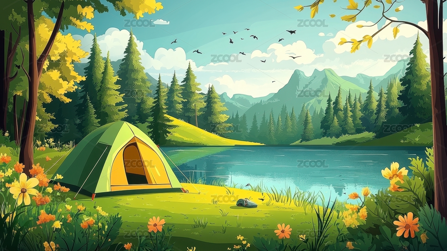秋天户外露营帐篷插画