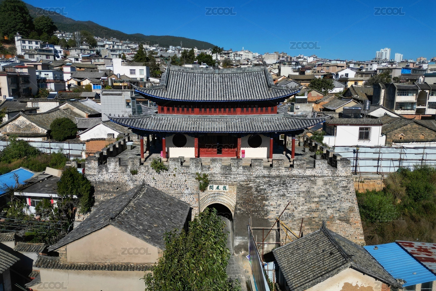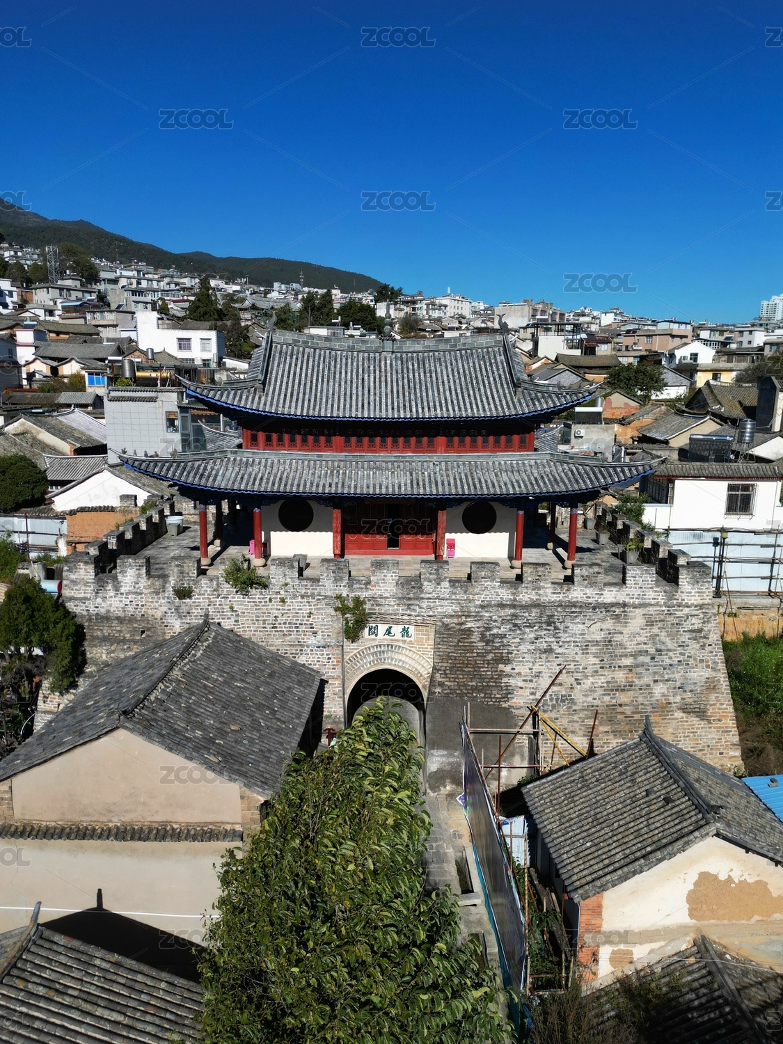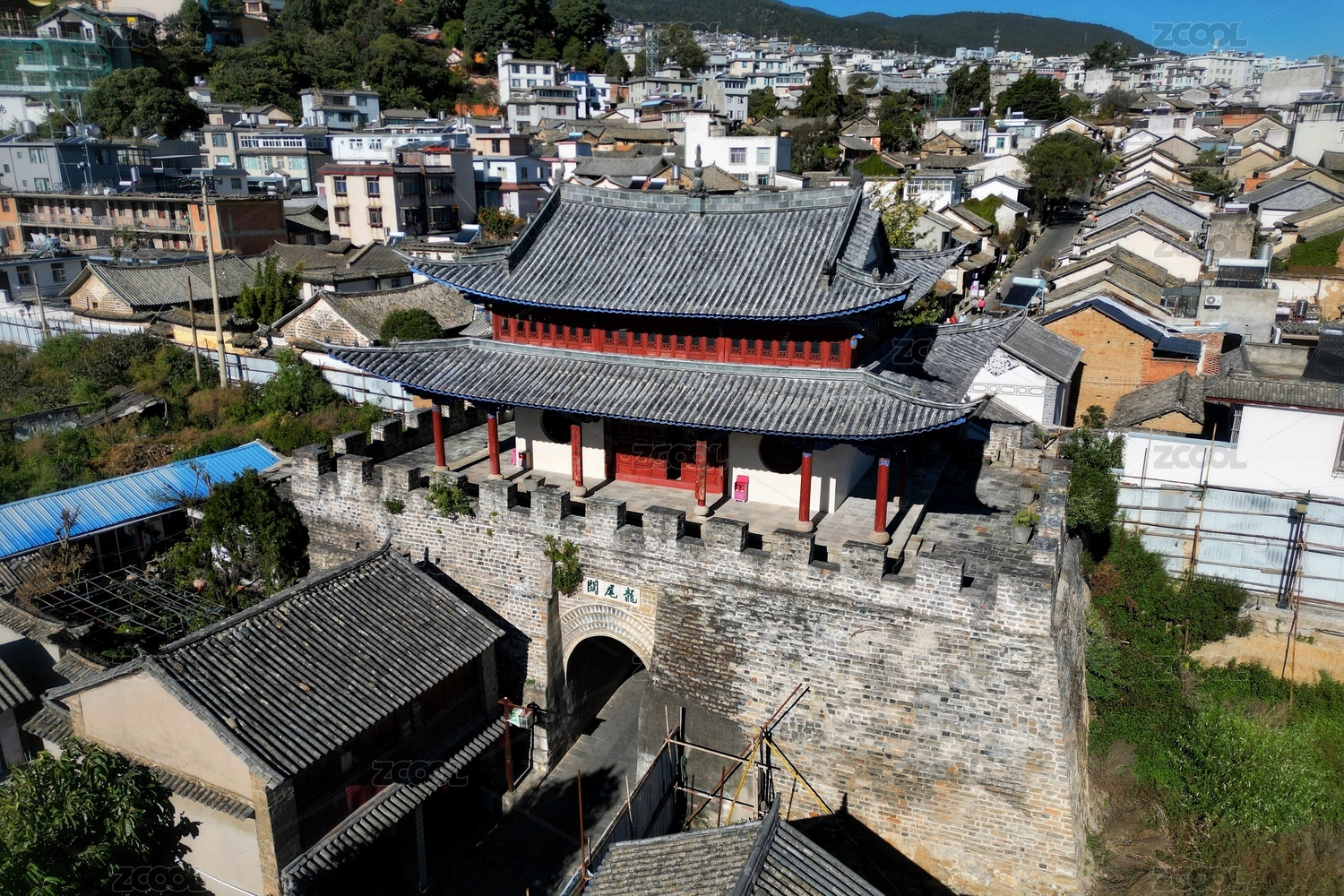 云南,大理,城市,建筑,历史,老街,城门,航拍,街道,屋顶