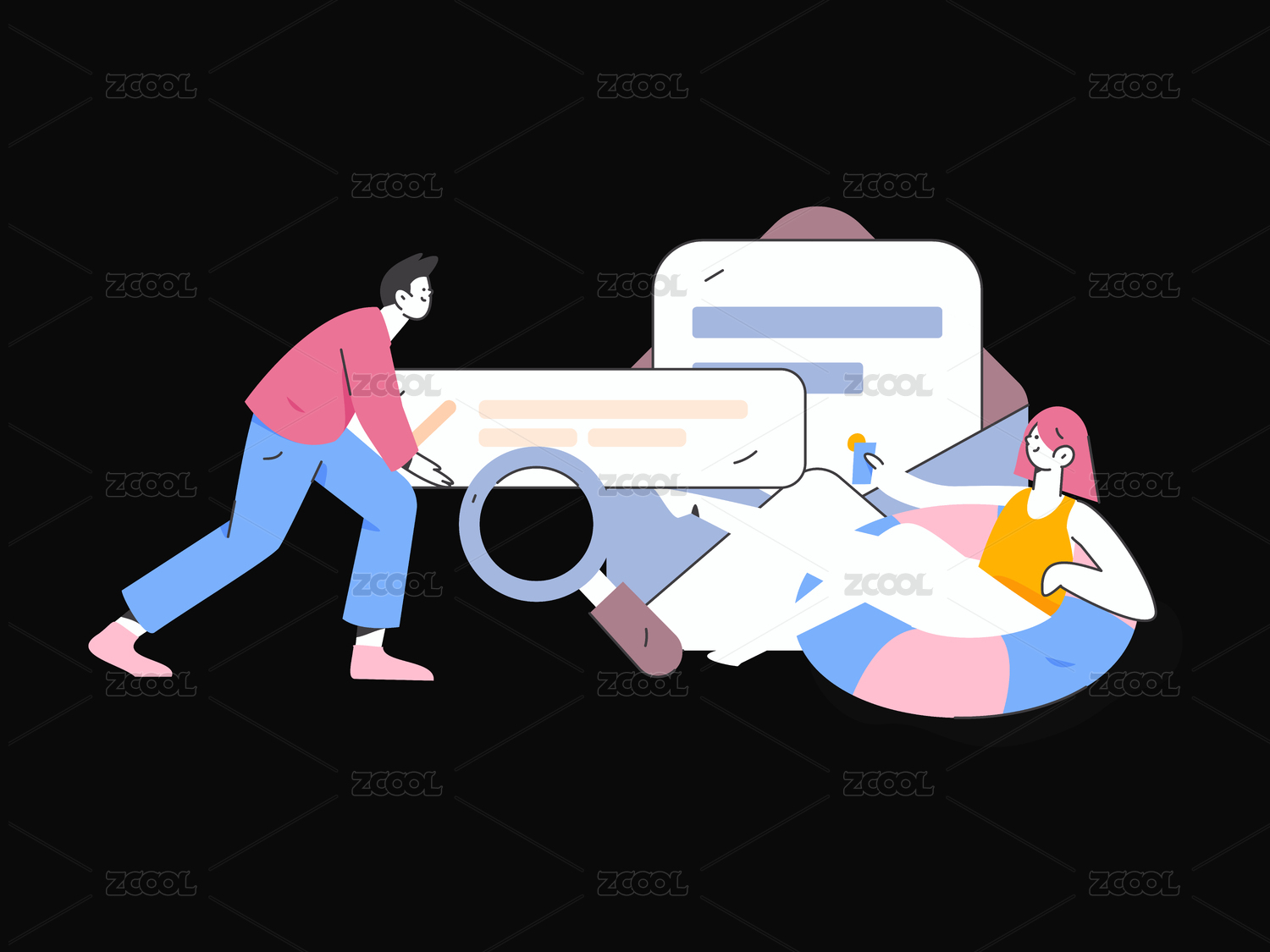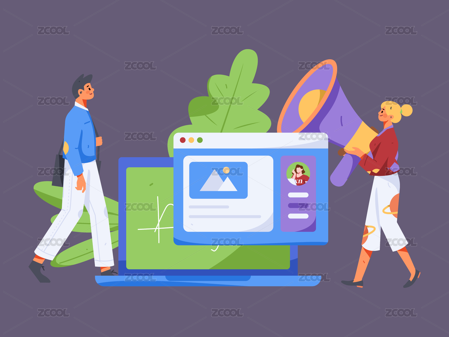 虚拟的人物社交沟通概念商业扁平矢量手绘插