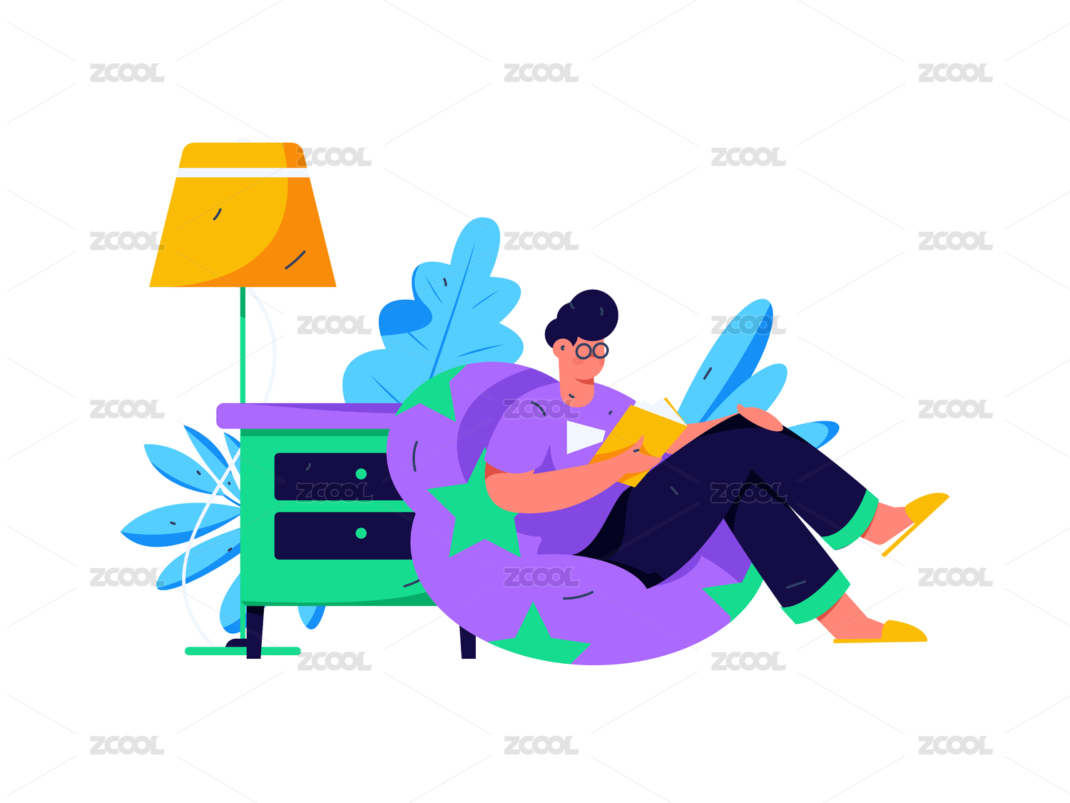 安静阅读的人物扁平矢量概念运营手绘插画