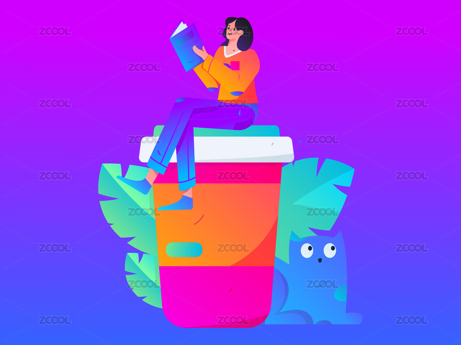 阅读女孩, 矢量扁平人物场景创意概念插画