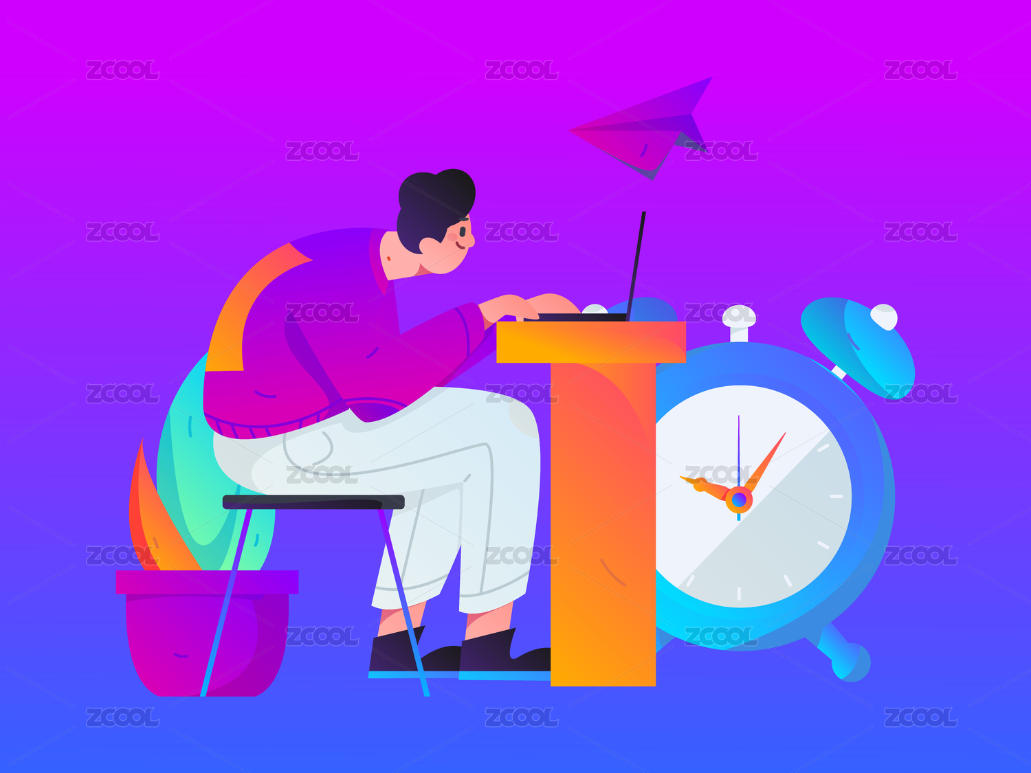 质感人物矢量学习插画