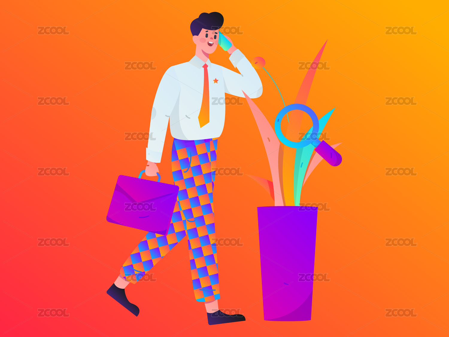 商务工作的人物扁平矢量概念运营手绘插画