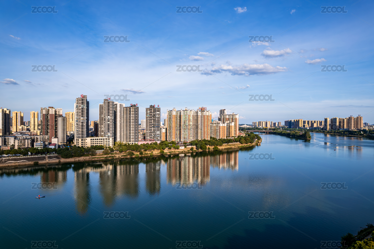 湖南衡阳湘江东洲岛夏日城市风光航拍