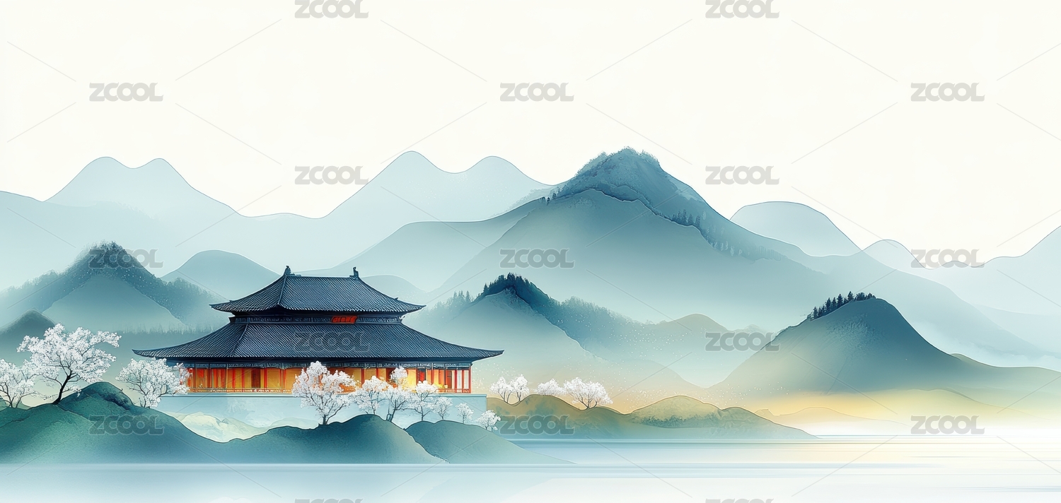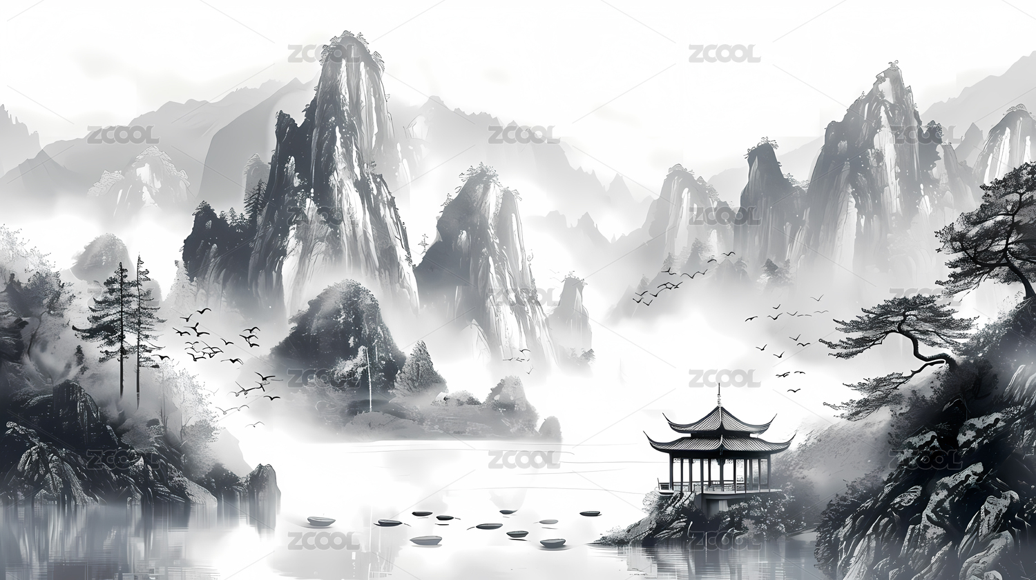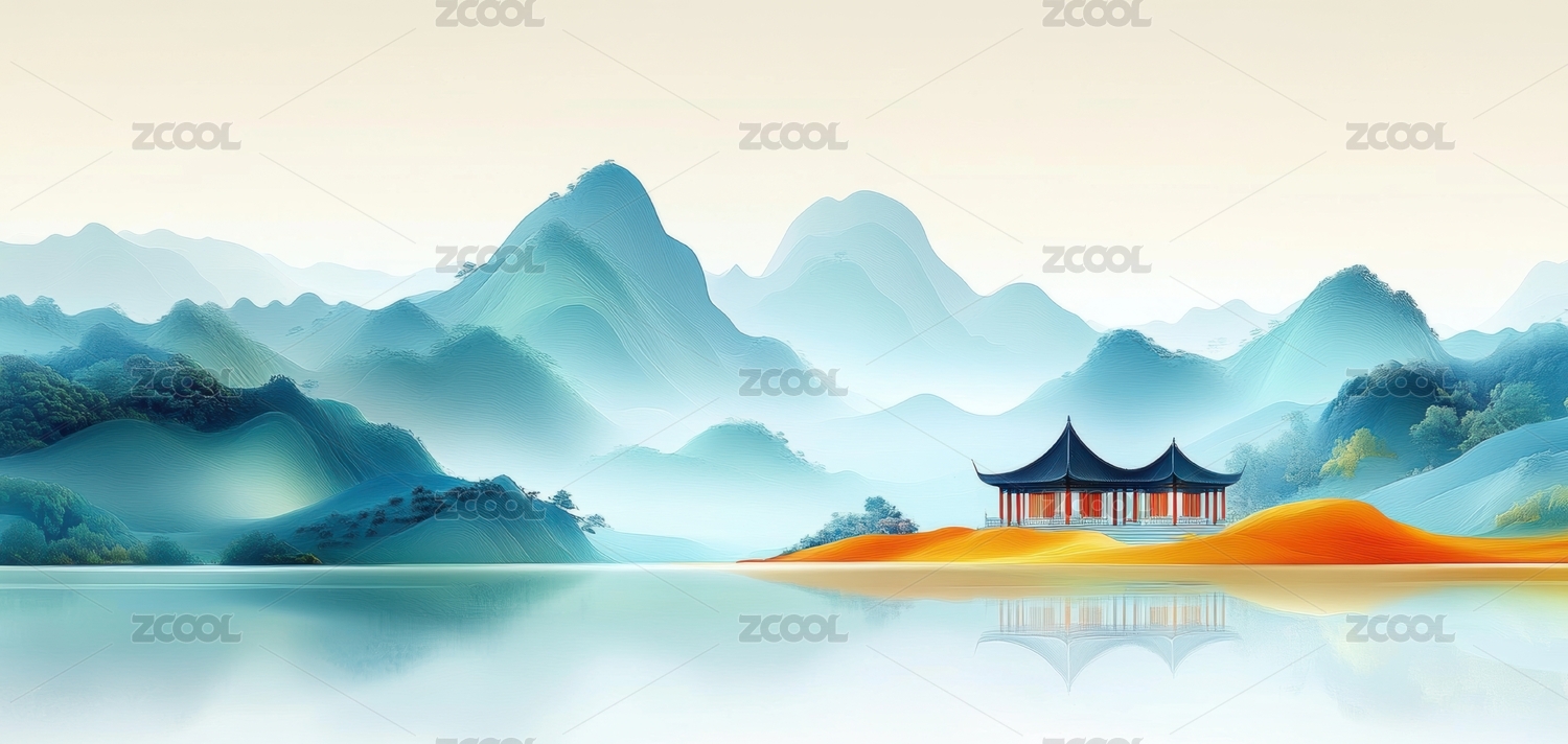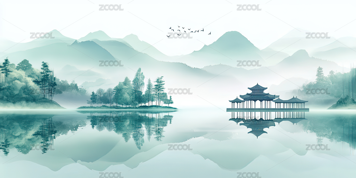 山,水,树,山峰,绿色,自然,风景,山水画,中国画,意境