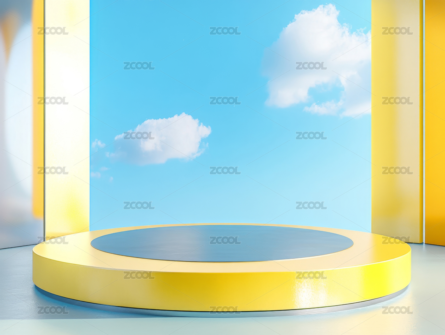 展示台与蓝天白云