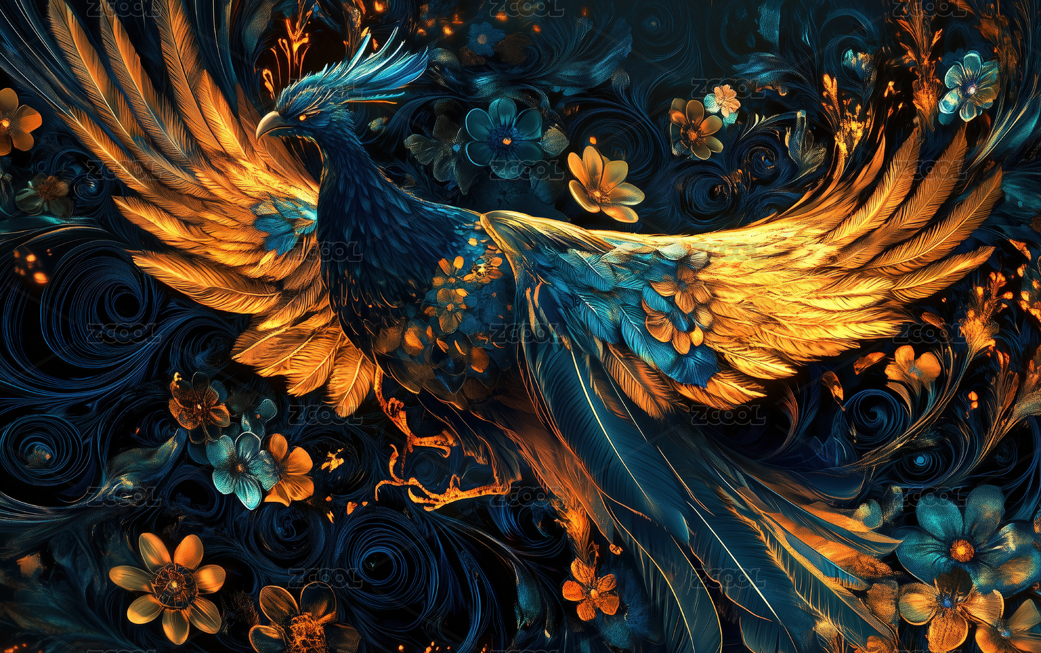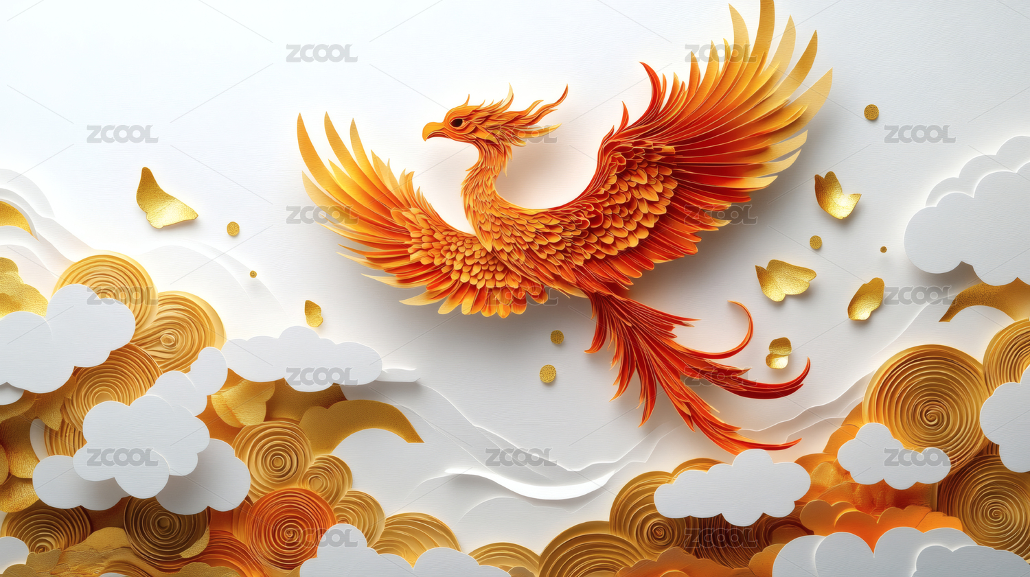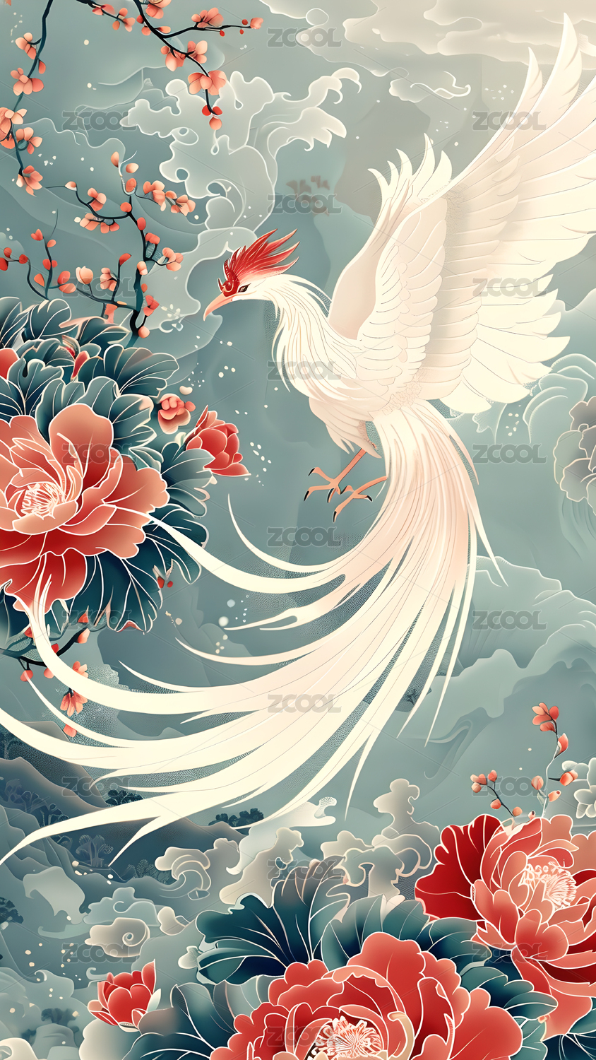 国潮风中国传统吉祥动物凤凰展翅鸟
