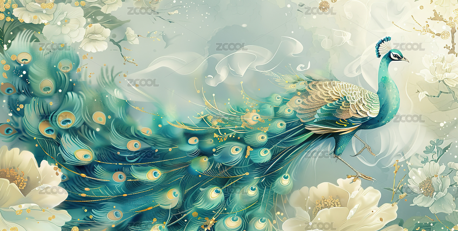中国风,立体,白色,孔雀,插画,白孔雀,鸟,动物