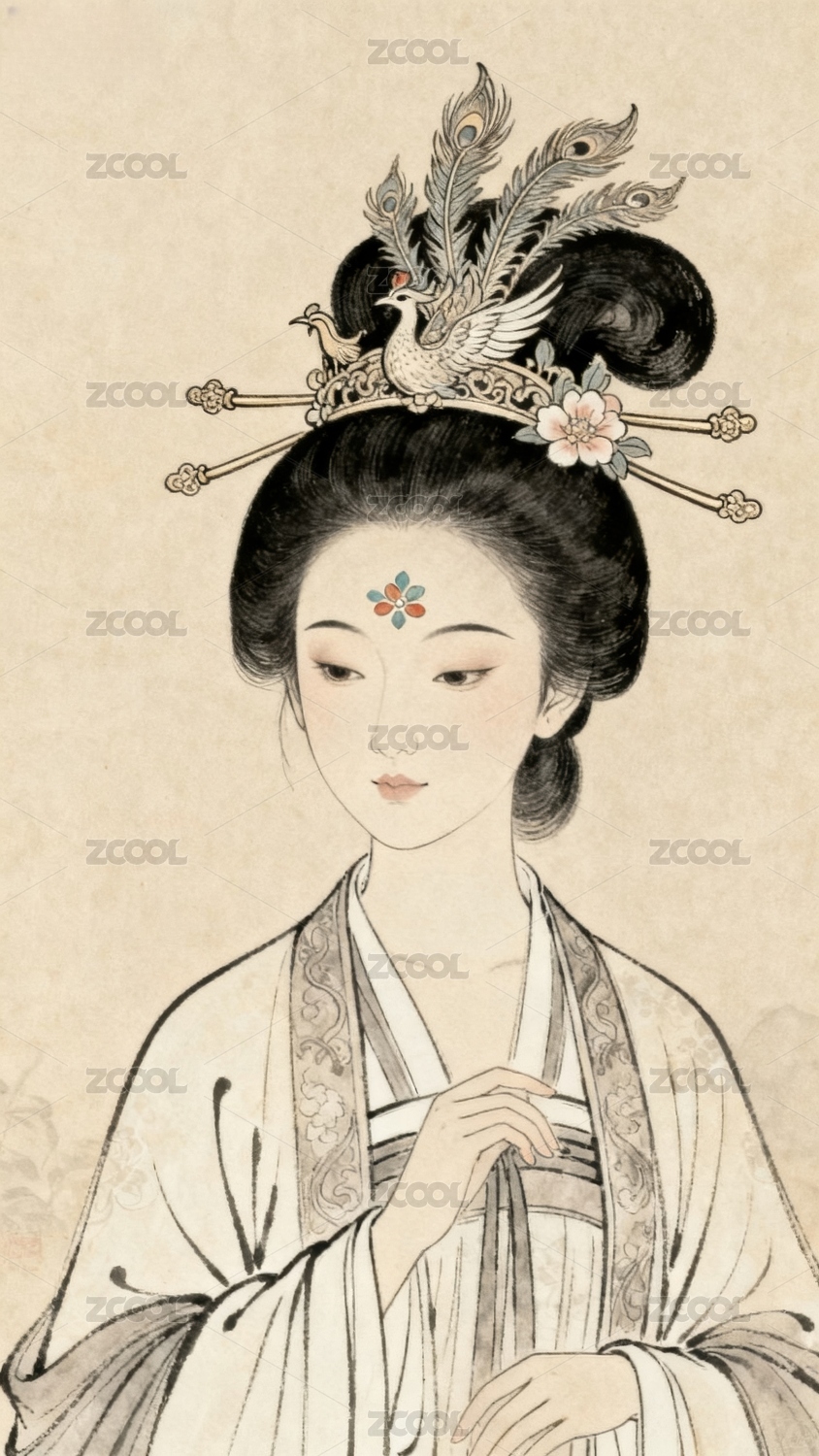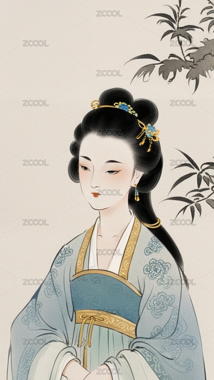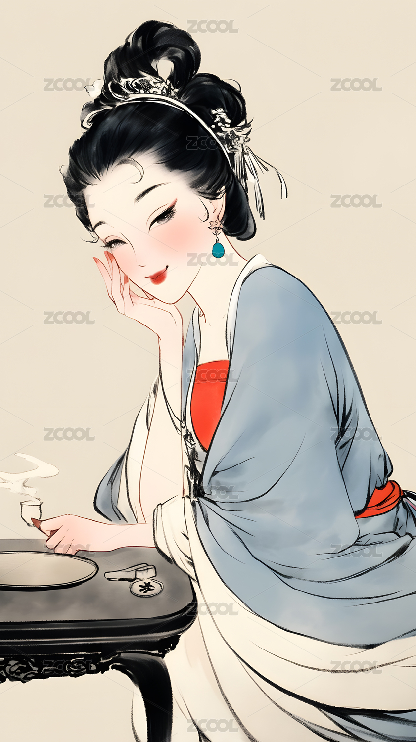 卡通,插画,人,人物,美女,中国风,古风,水墨画