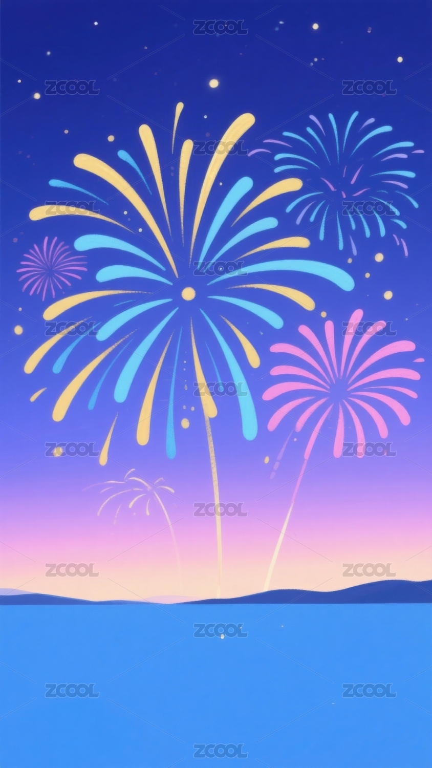 漂亮的烟花极简插画