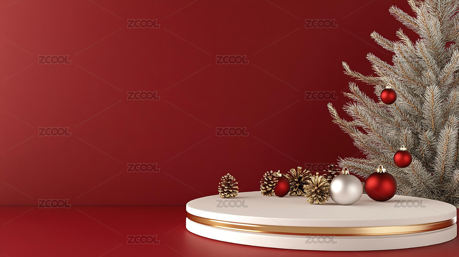 红色背景下的圣诞装饰场景