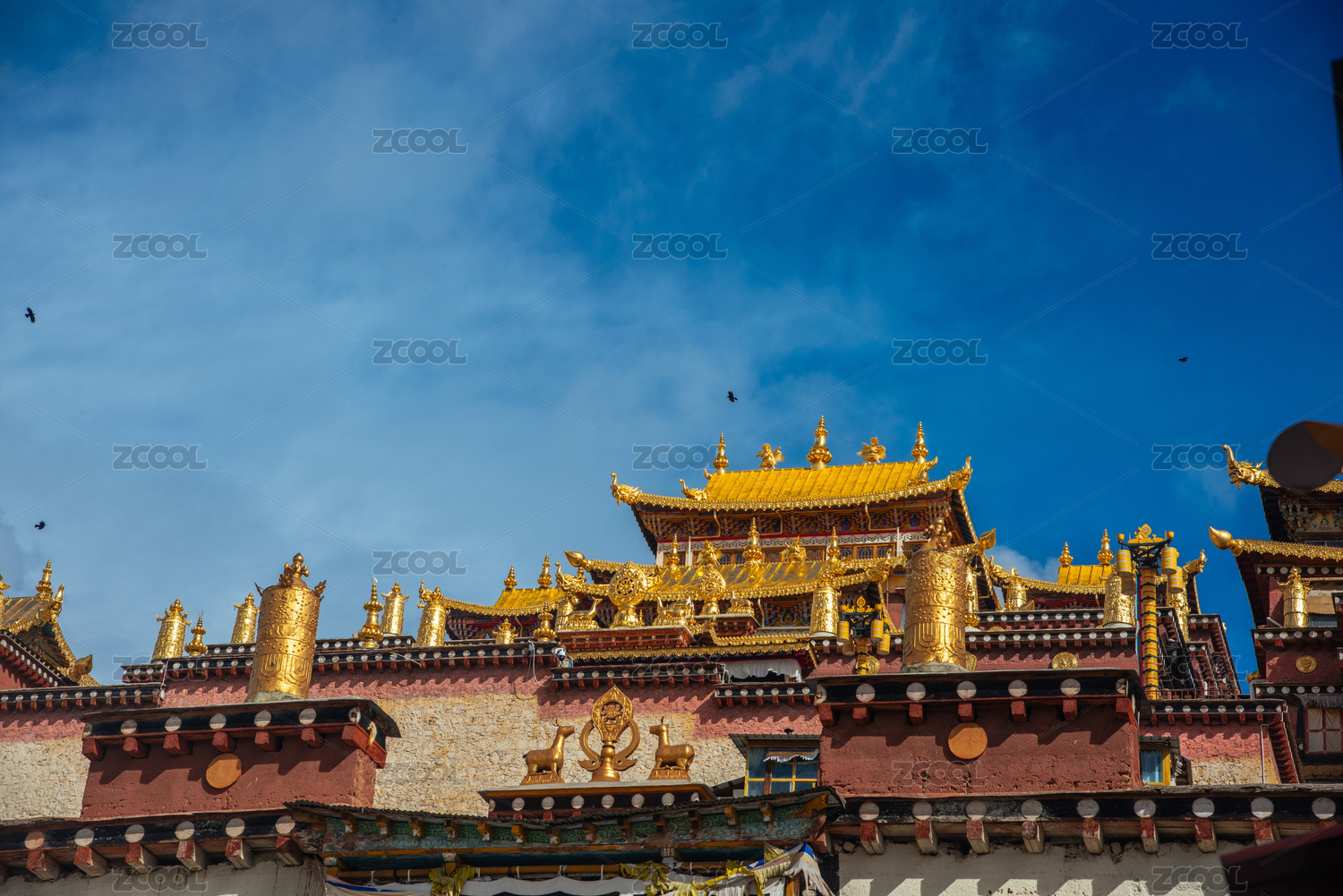 云南省迪庆藏族自治州松赞林寺晴天风光