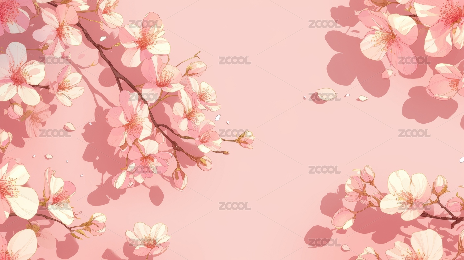 粉色桃花樱花唯美浪漫植物插画背景