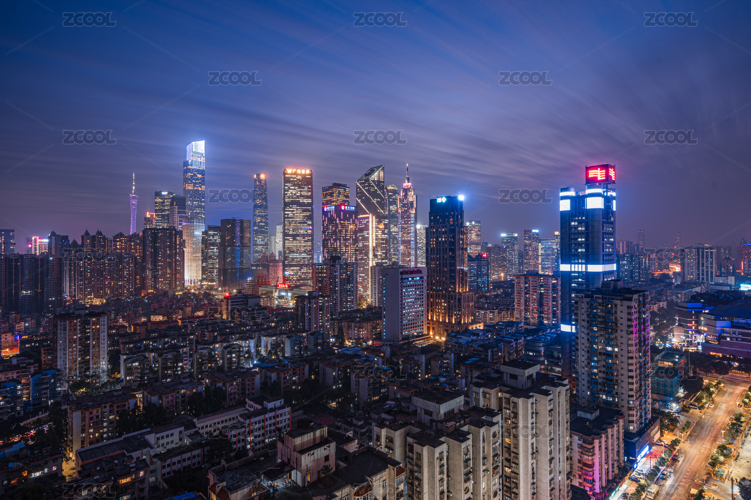 中国广东广州越秀城市建筑风光夜景