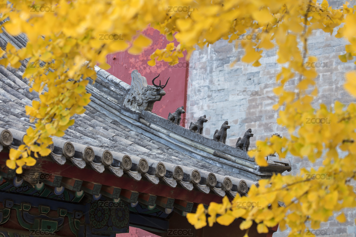 贵阳西普陀寺秋天银杏,寺庙建筑秋色