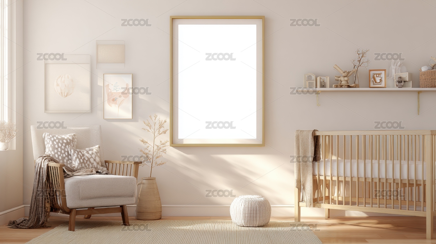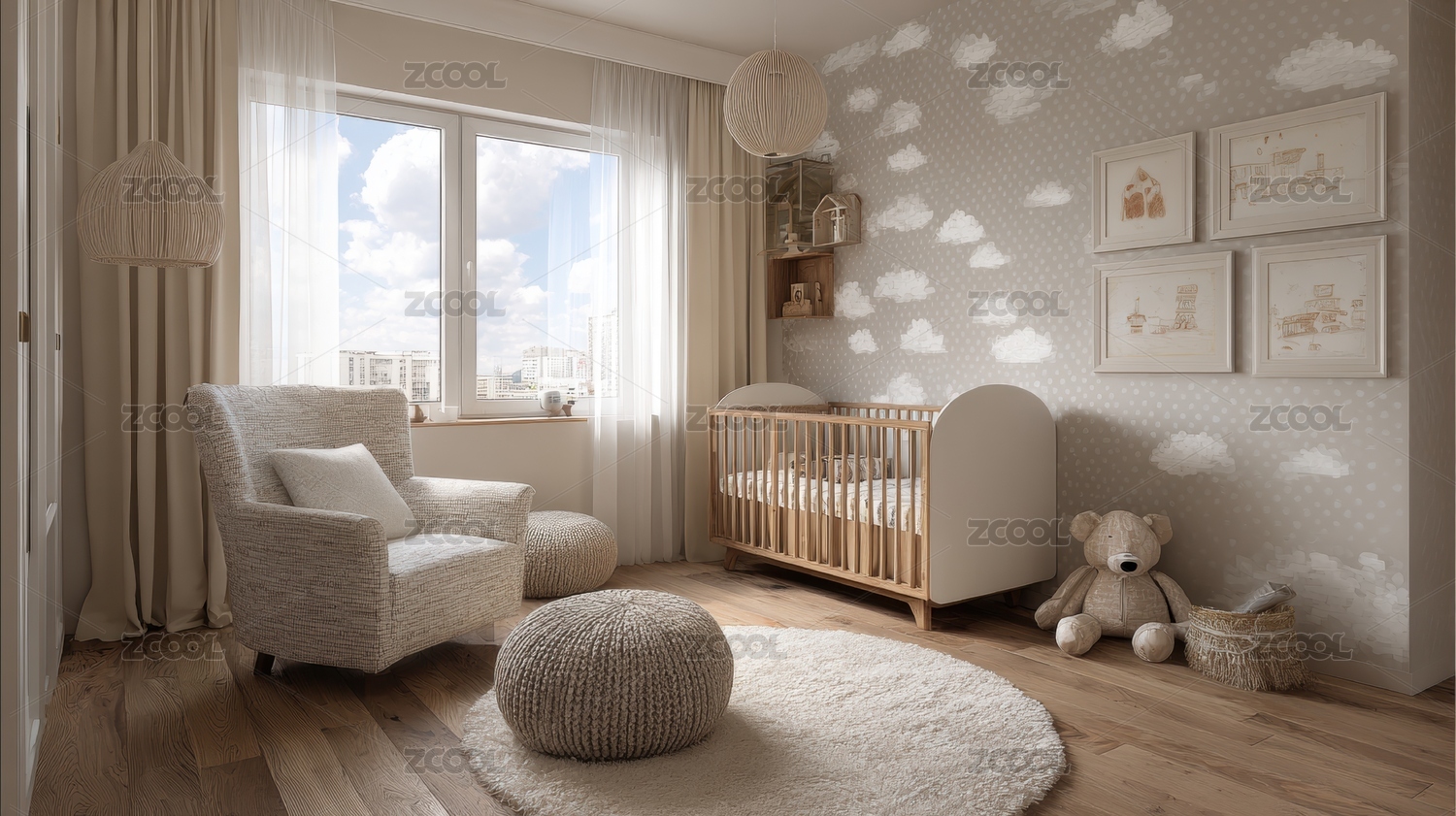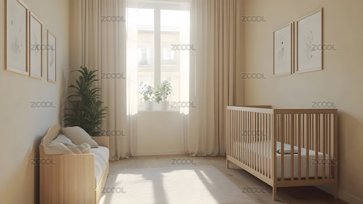 室内,婴儿房,婴儿床,沙发,米白色,温馨,房间,白墙