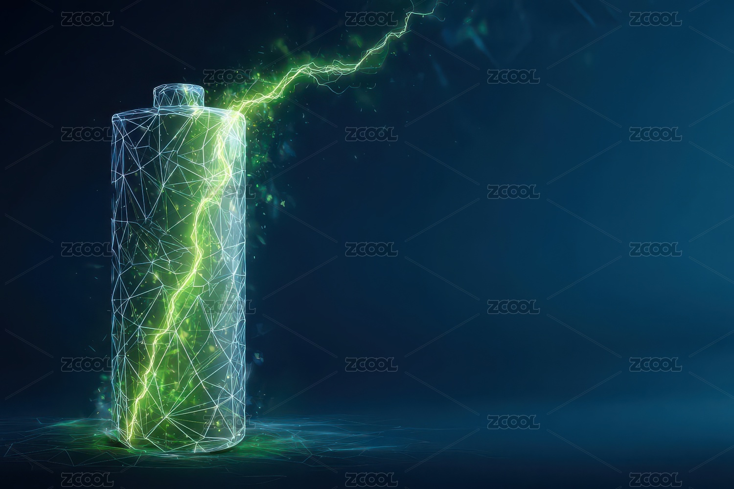 蓝色低多边形电池与闪电