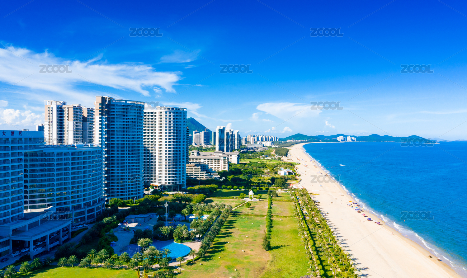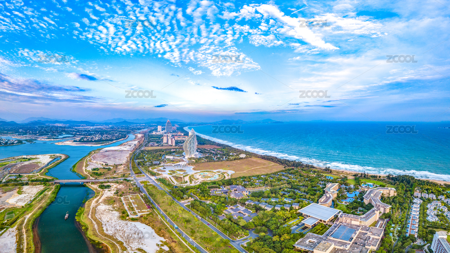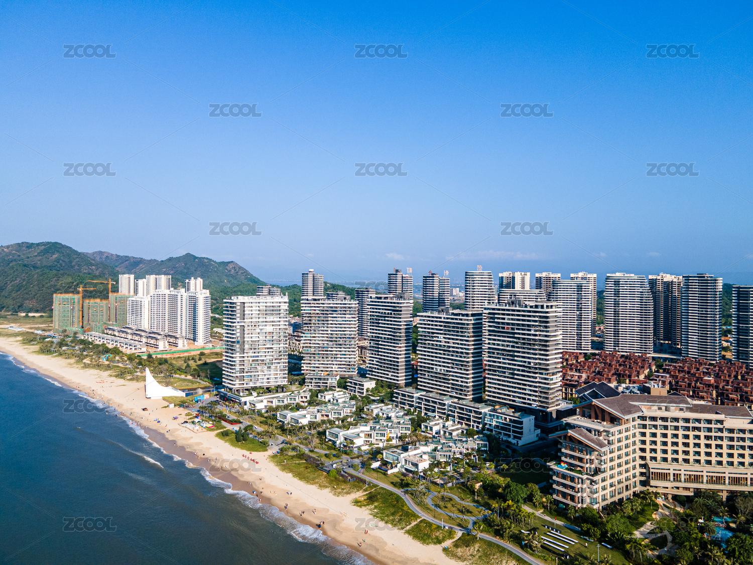Aerial View of Resorts and Hotels at Haitang Begonia Bay in Sanya of Hainan Island of China